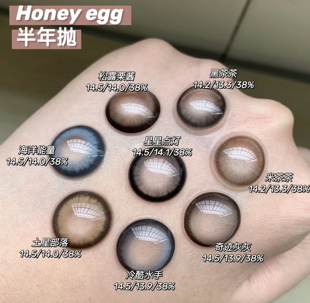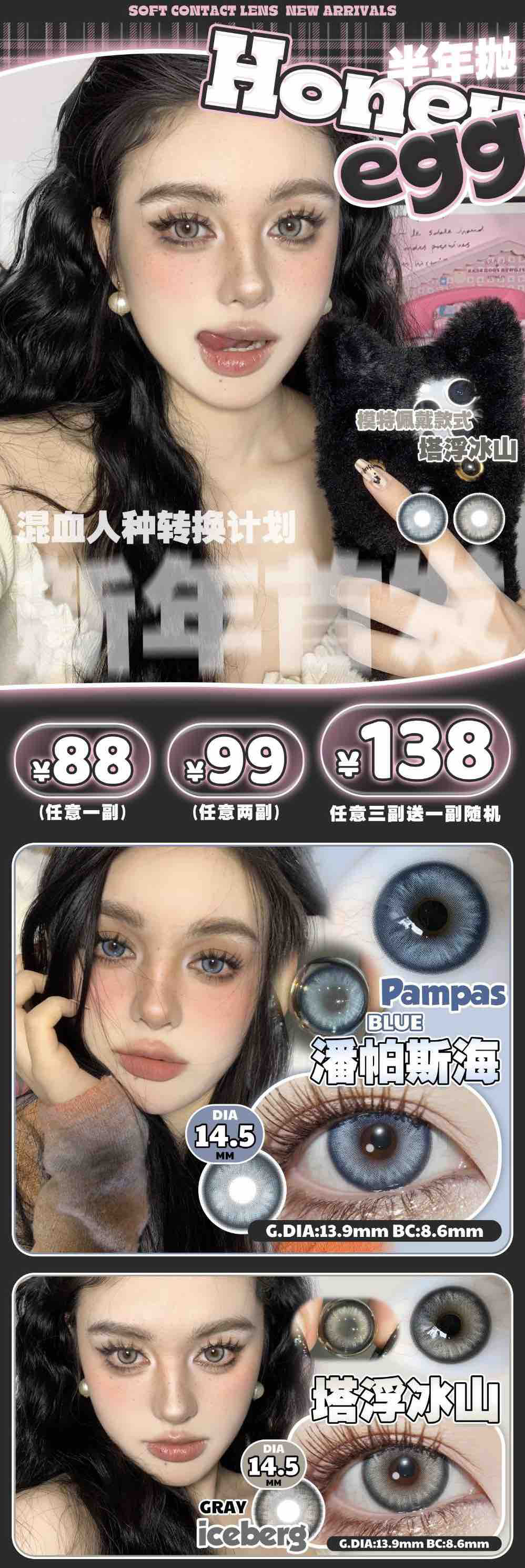 Honeyegg2024新款半年抛/全色板微混血,心动时刻全色板新款哈 可爱/纯欲/显色/自然/混血都有;活动88/2副 128/3副 再随机送一副 到手4幅