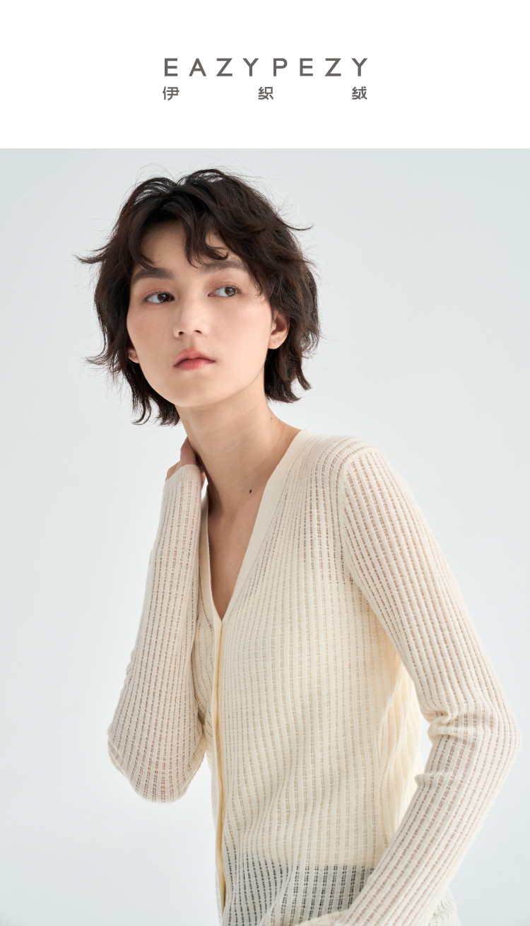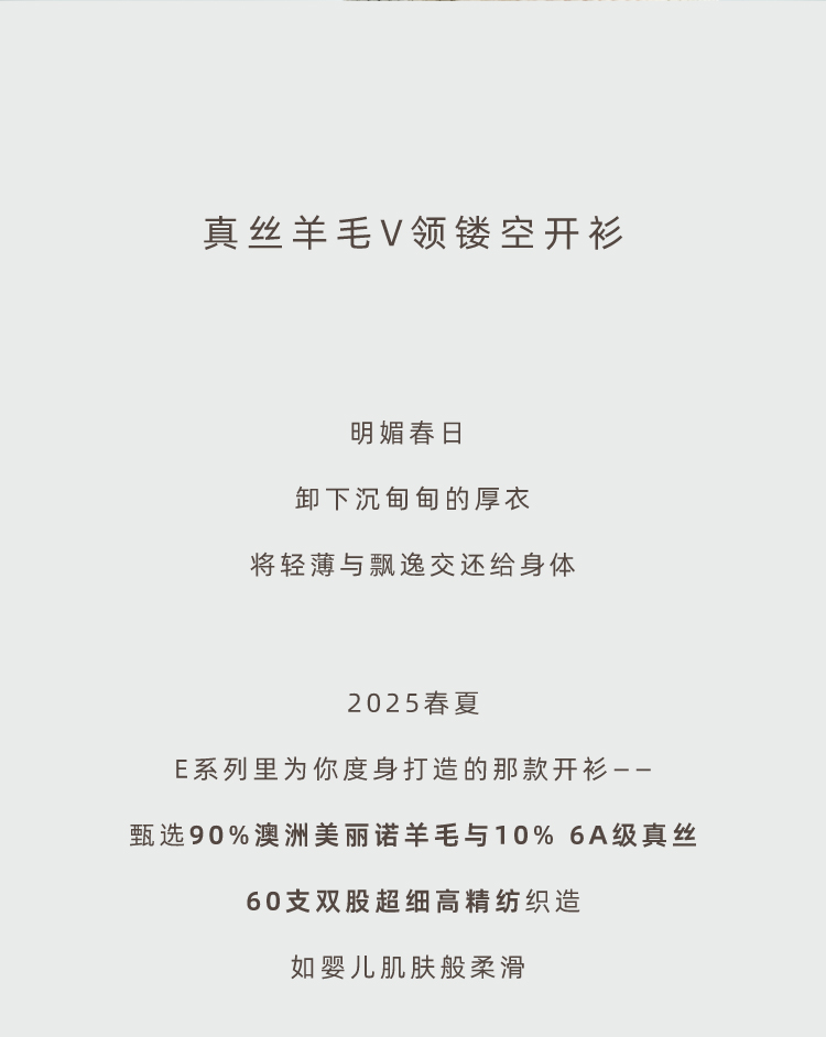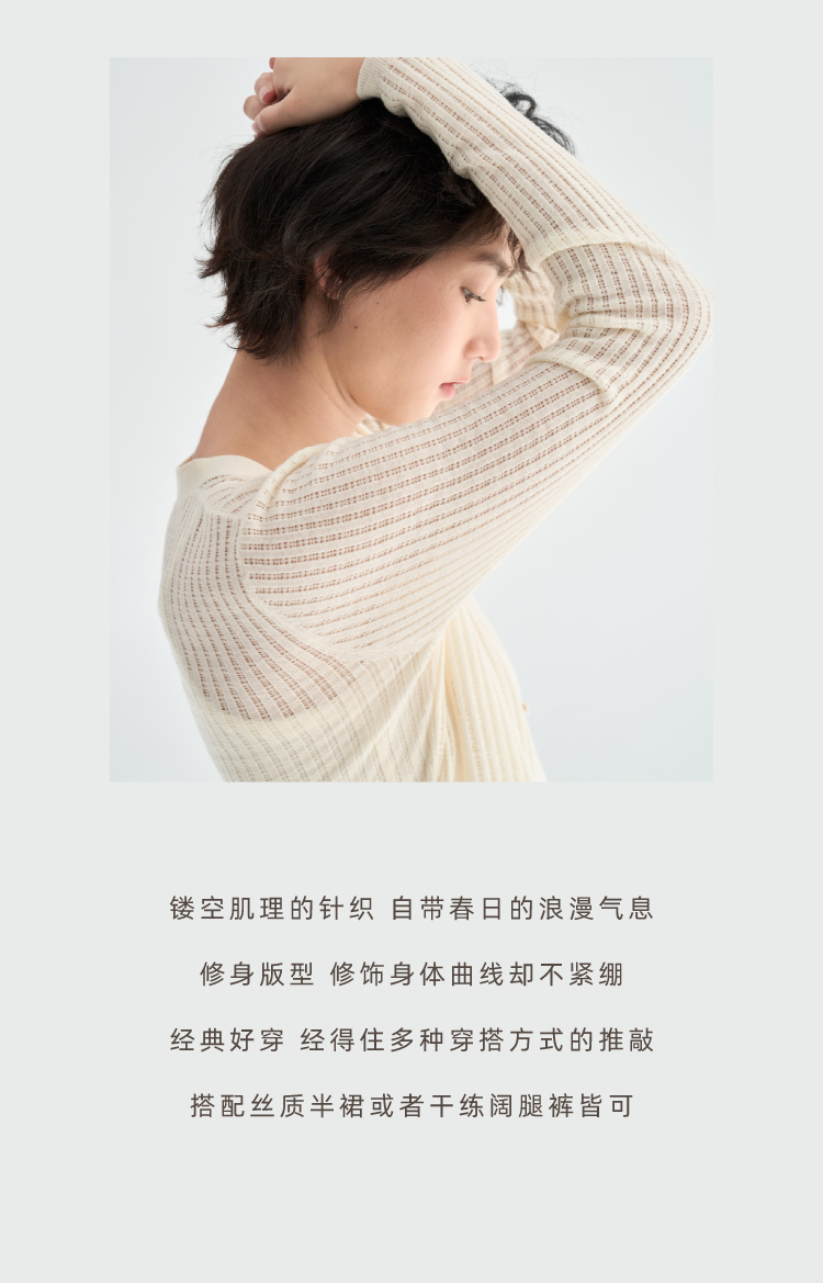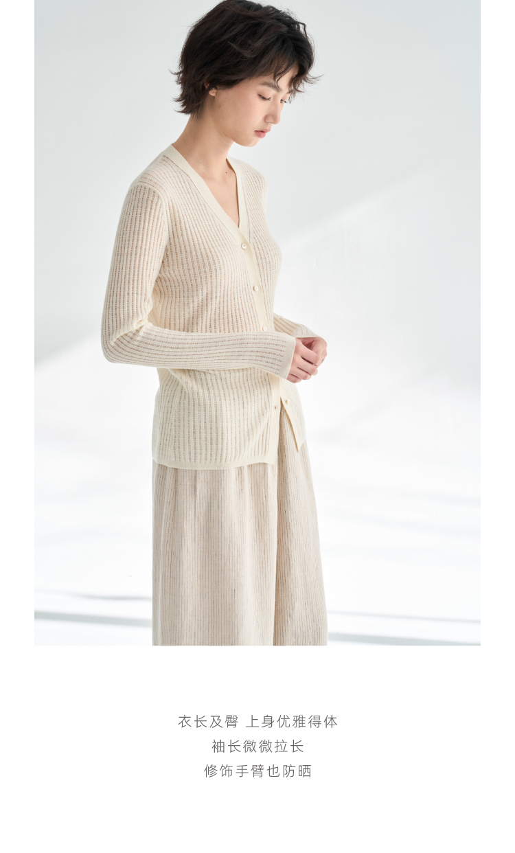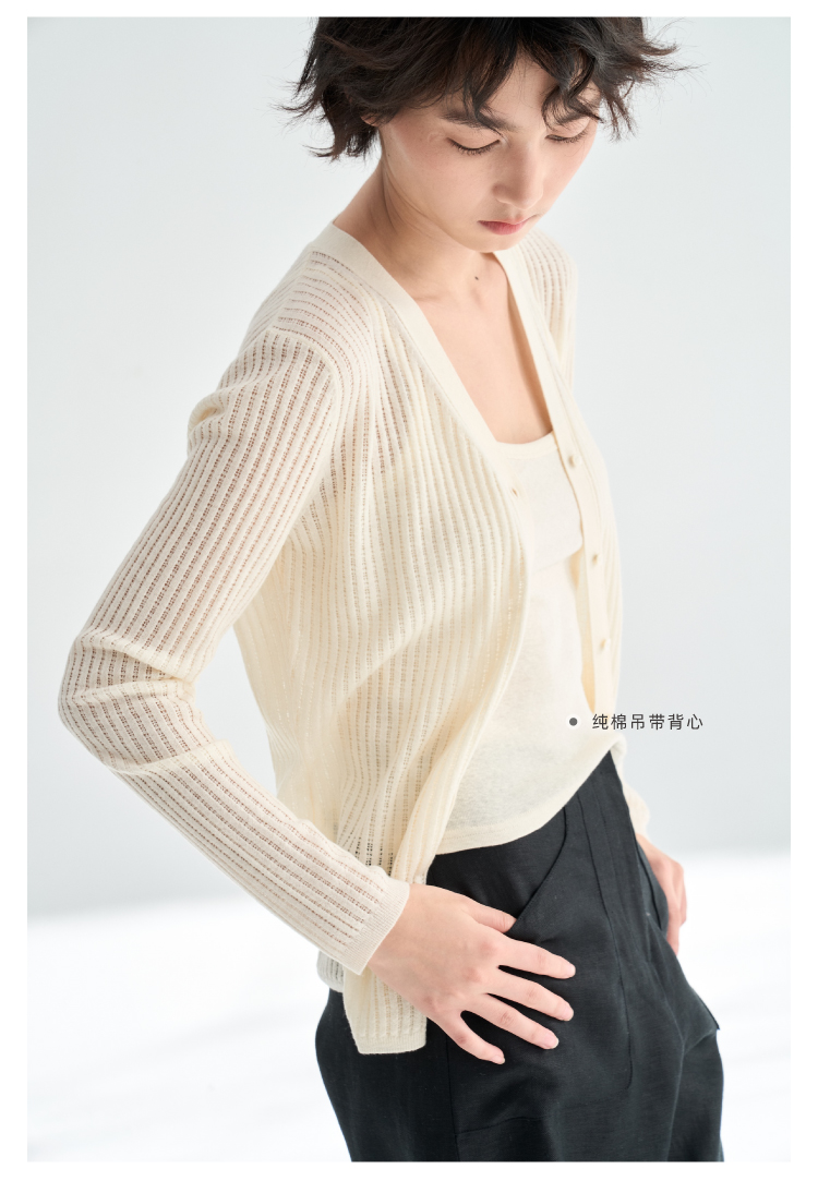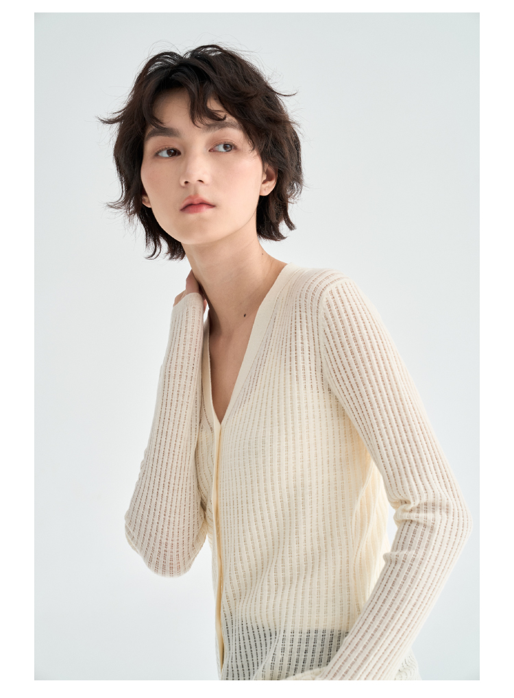 真丝羊毛V领镂空开衫