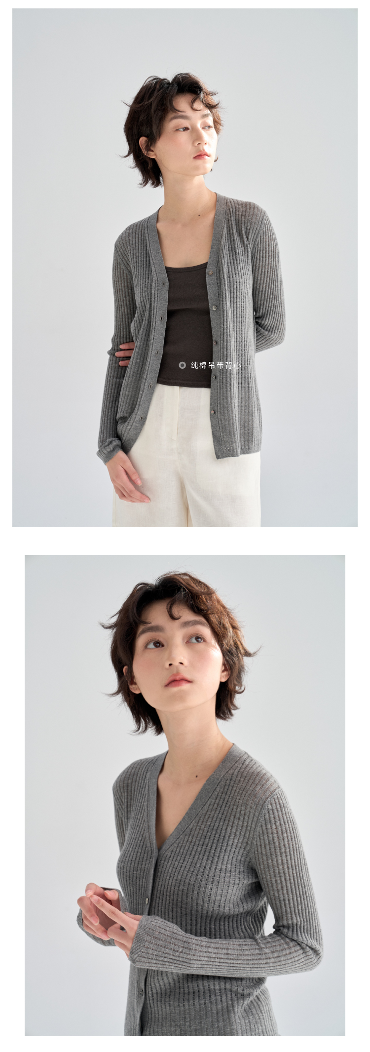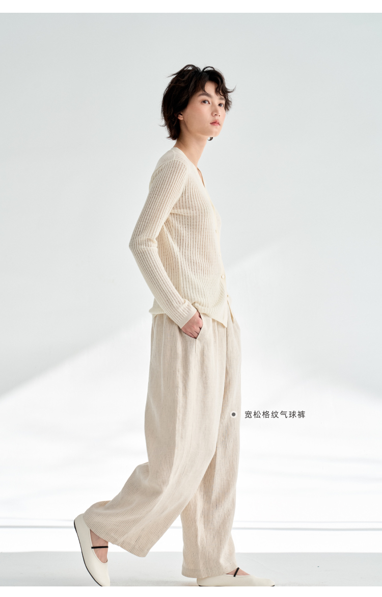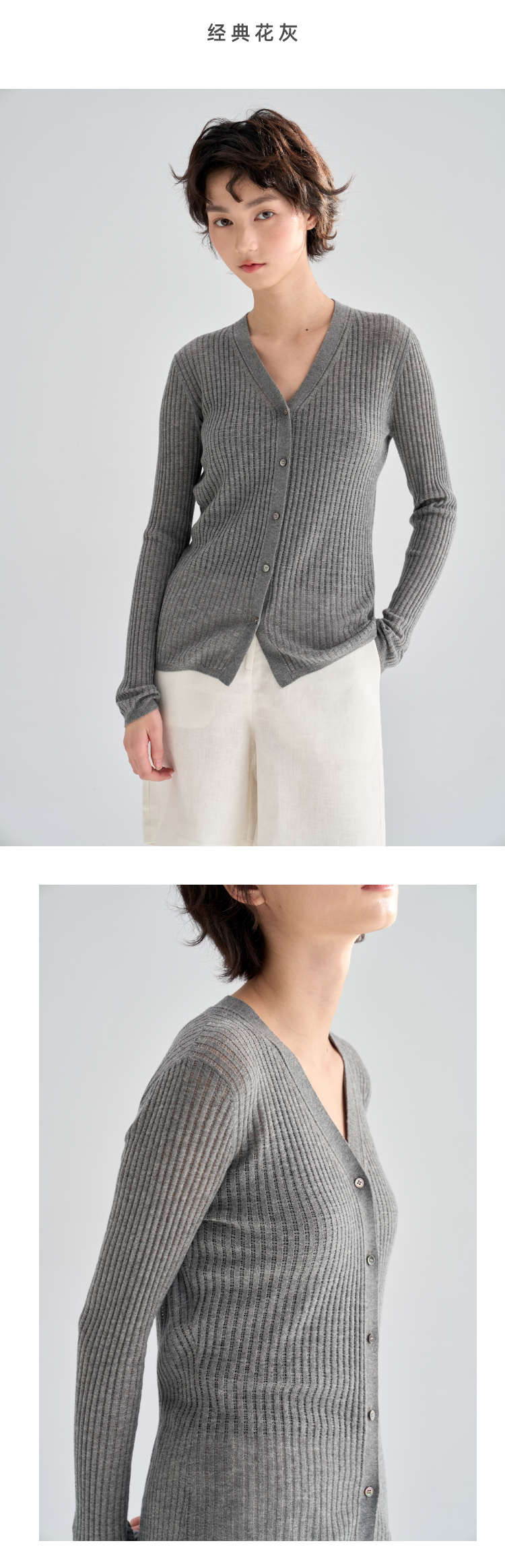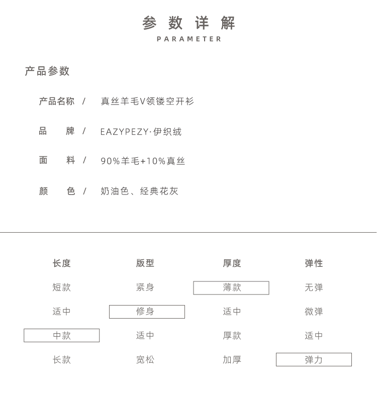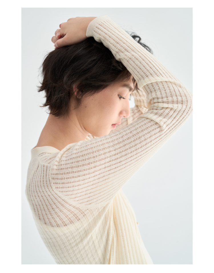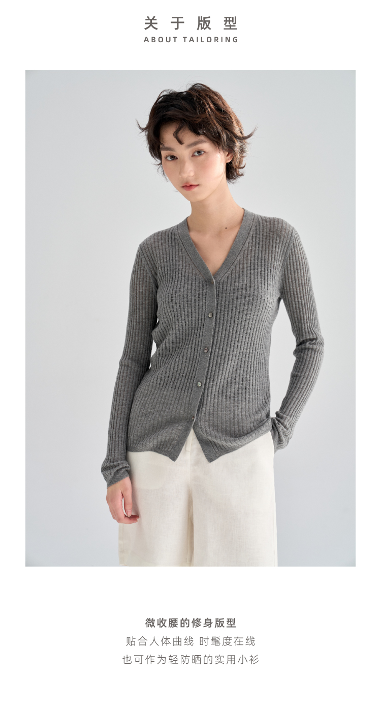 真丝羊毛V领镂空开衫