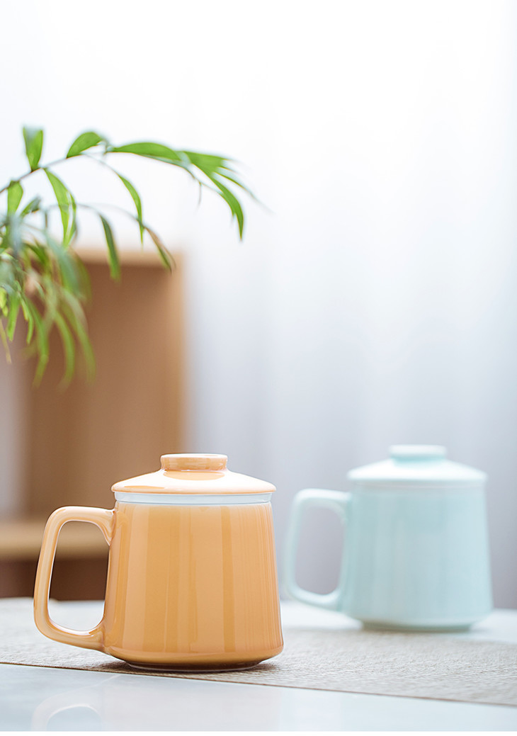 茶杯陶瓷杯子家用带盖带茶漏过滤单只定制刻字带把办公水杯男女士