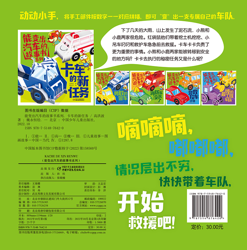 《能变出汽车的故事书系列·卡车的新任务》适读年龄3-6岁 嘀嘀嘀,嘟嘟嘟,情况层出不穷,带着卡车卡卡和救护车急急出发救援吧!