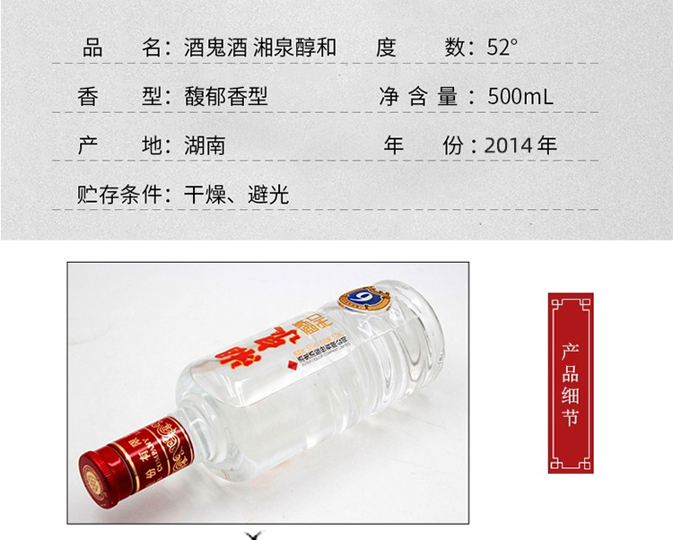 【2014年生产】酒鬼湘泉醇和6 52度 馥郁香型白酒 500ml