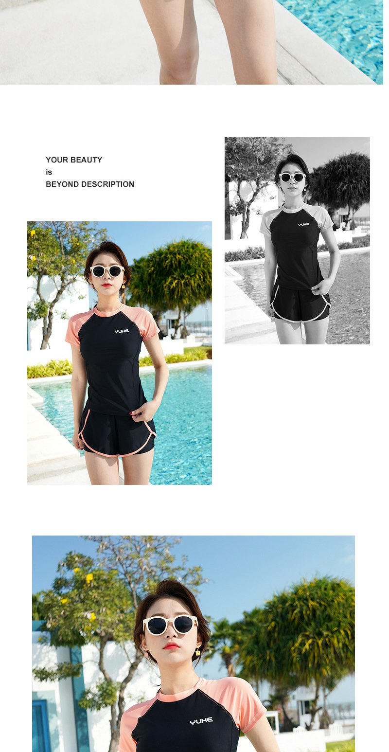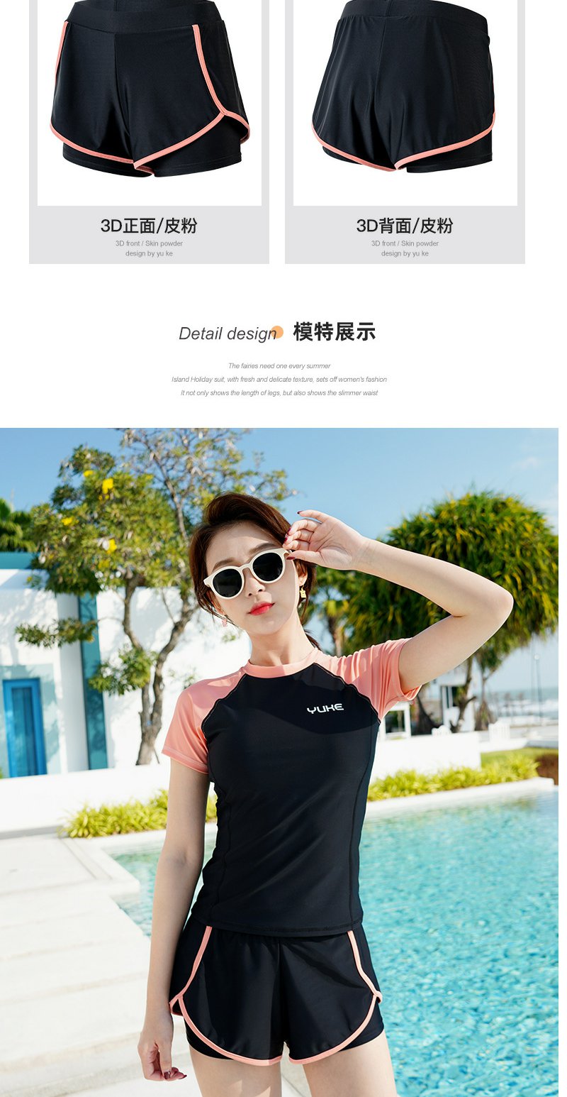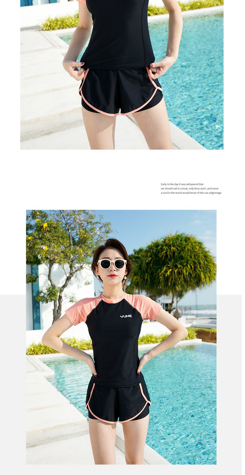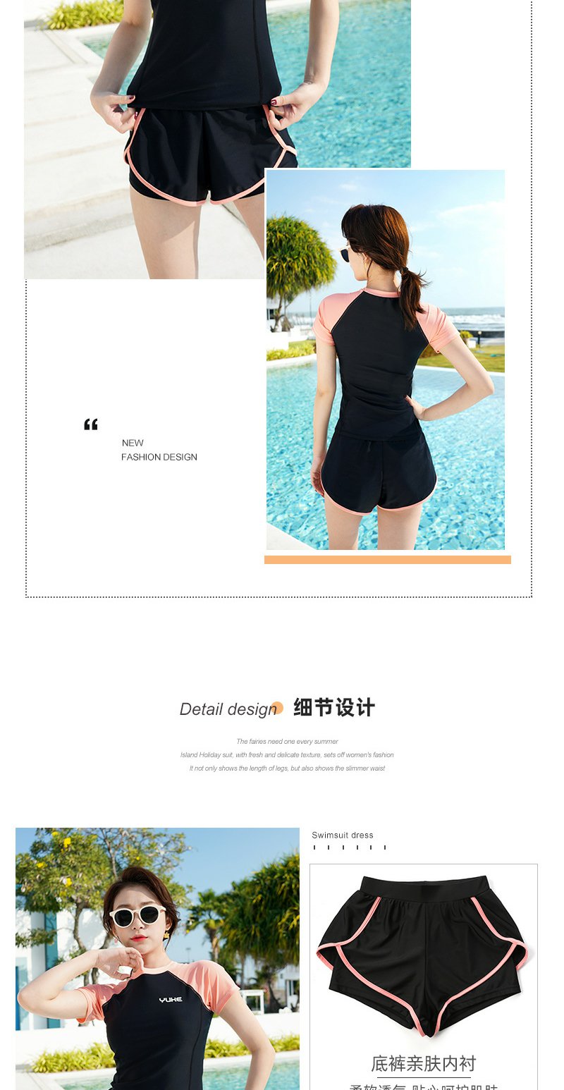 新款分体游泳衣女运动小清新平角裤学生保守遮肚显瘦温泉套装