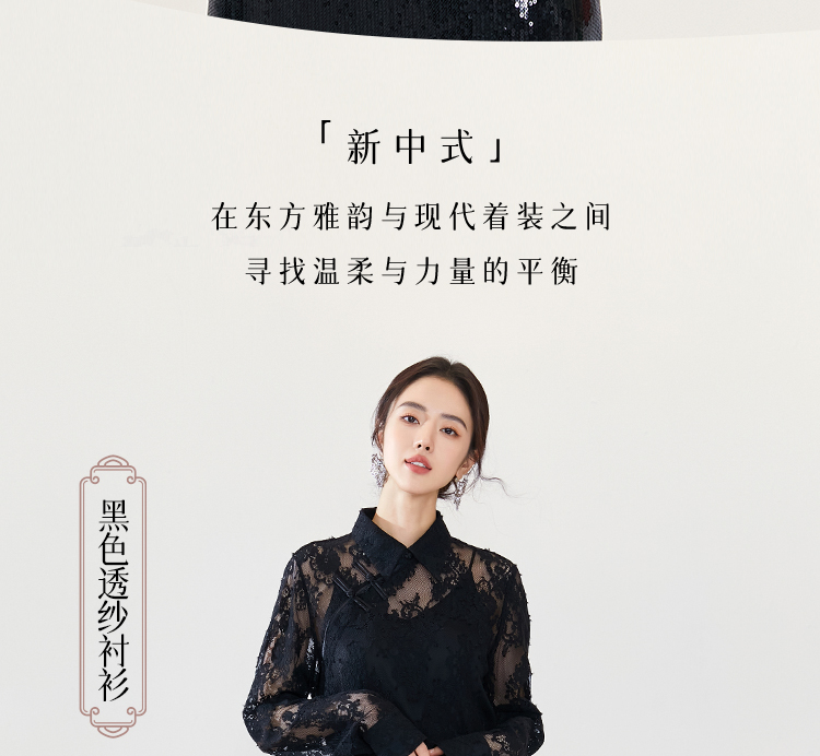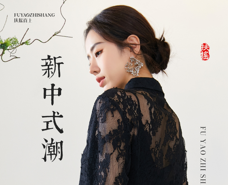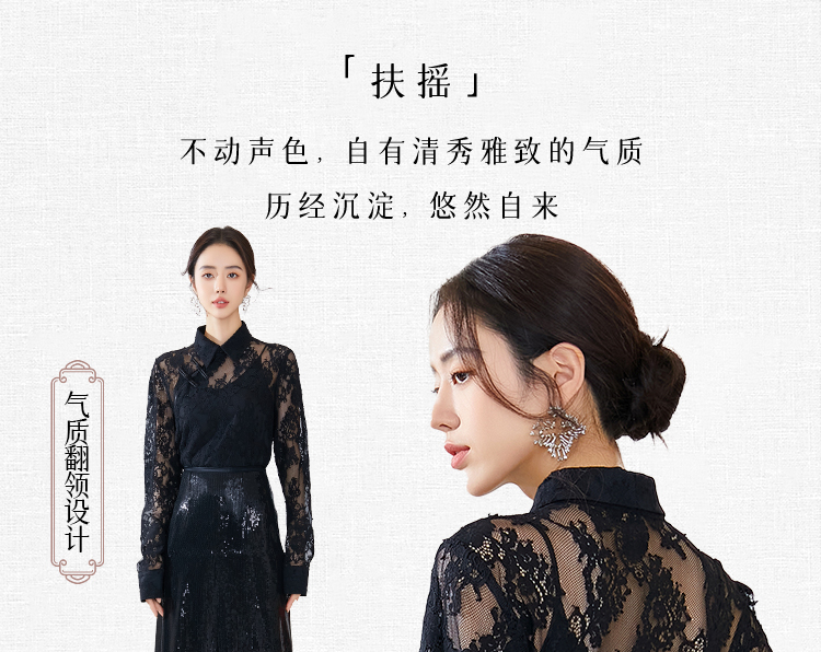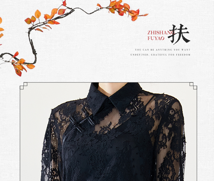 FUYAO扶摇 2024早春新款衬衣新中式国风斜襟盘扣蕾丝衬衫立领上衣