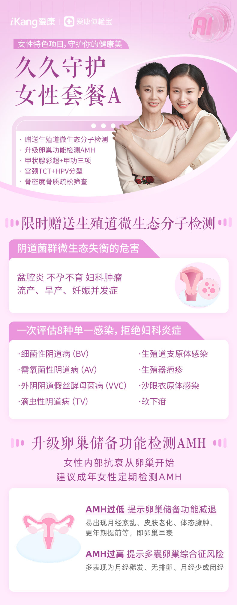 【升级宫颈TCT、HPV分型、甲功三项】爱康 久久守护女性套餐A