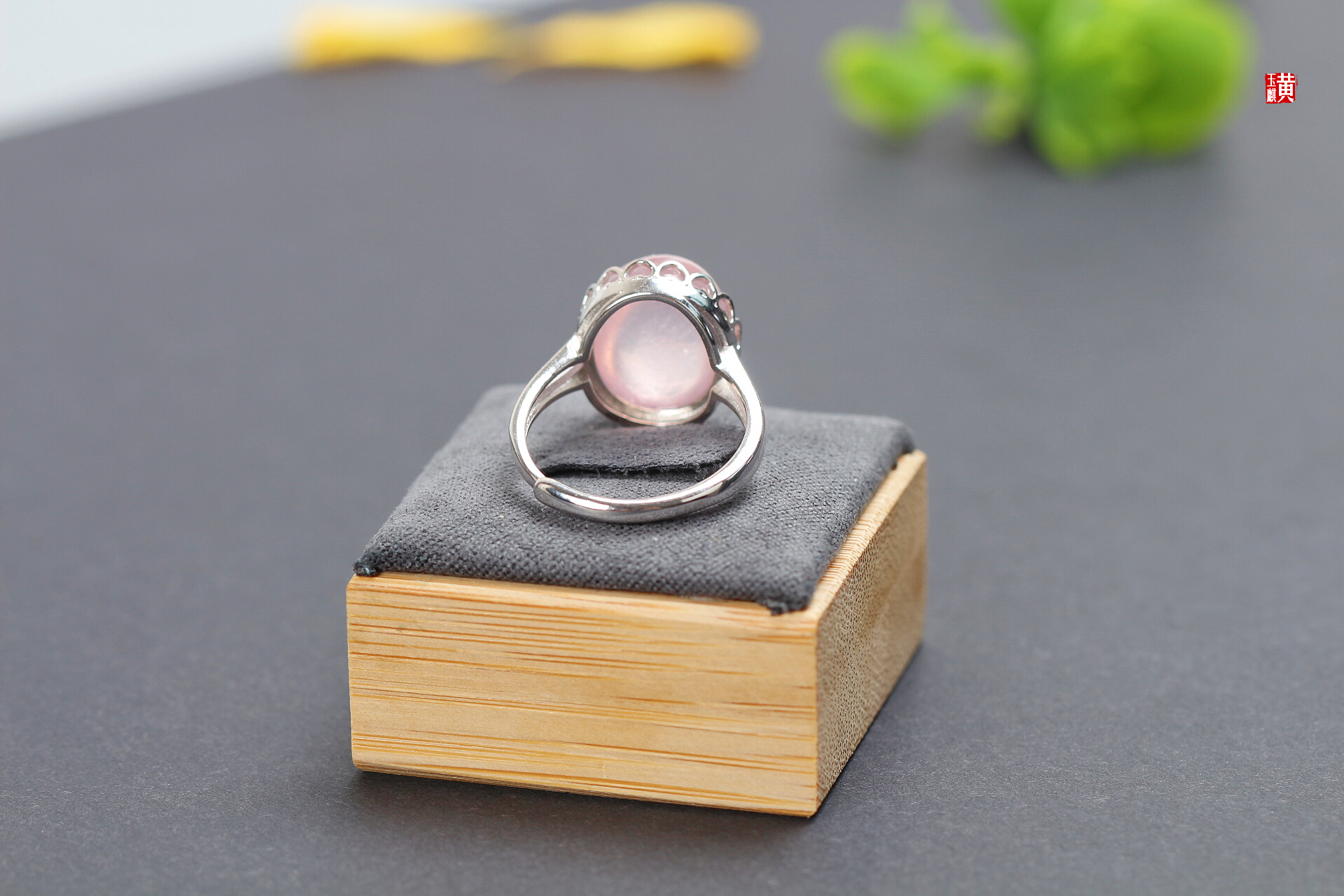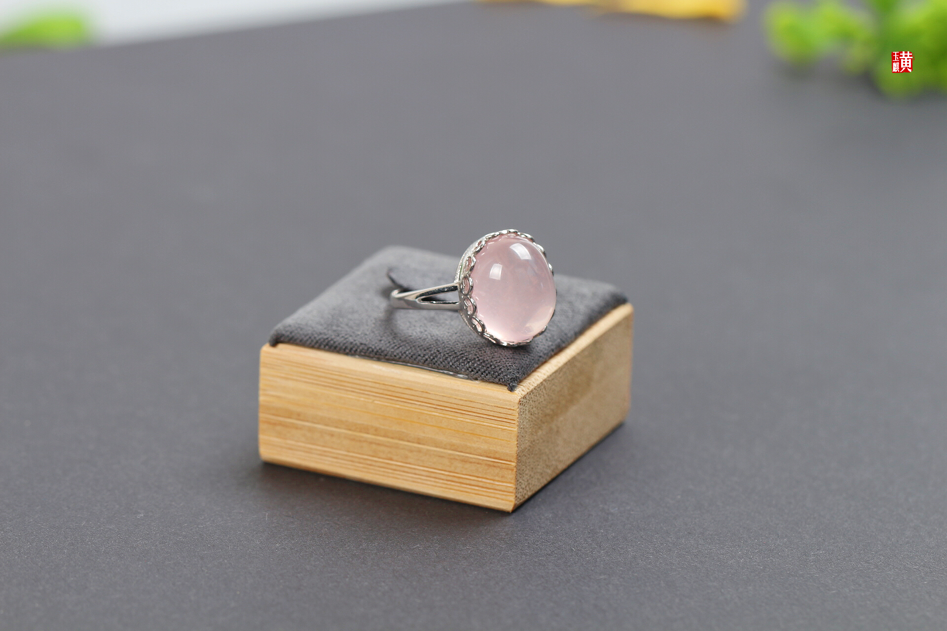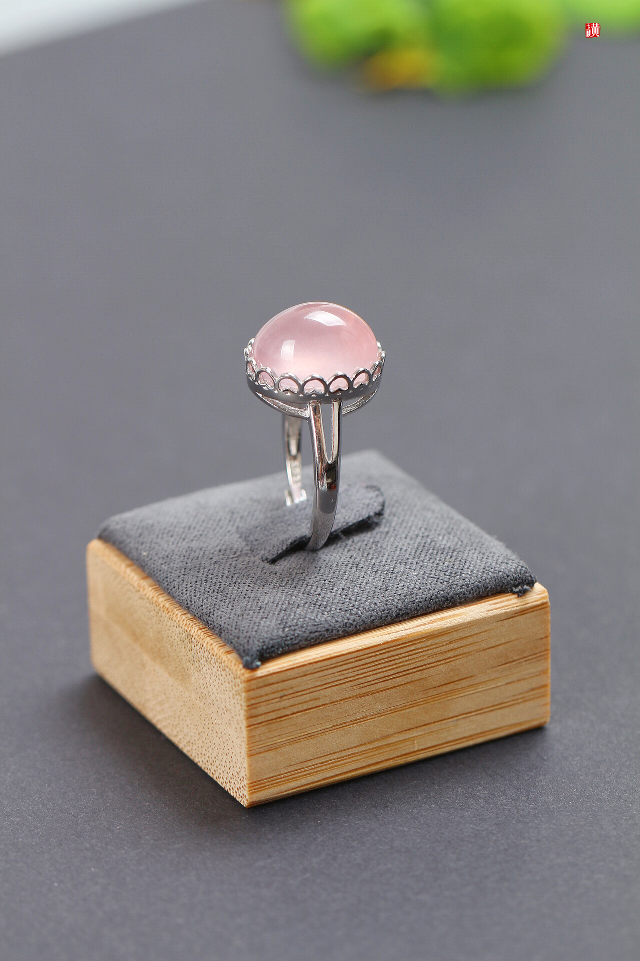 粉晶芙蓉石戒指【初桃】,925银镶,活扣可调节