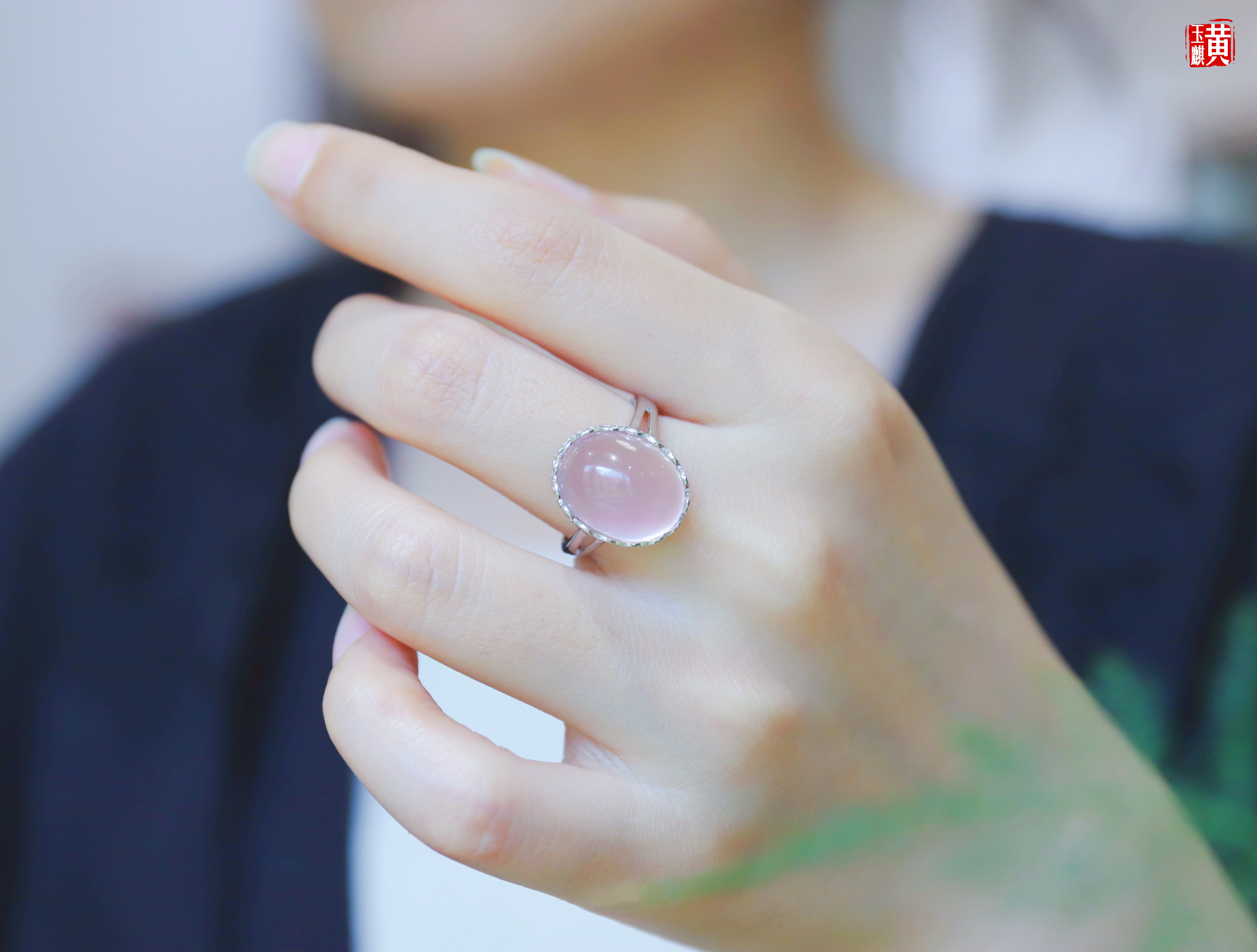 芙蓉石粉晶戒指,蛋面饱满,晶莹剔透,粉粉嫩嫩,925银镶,活扣可调节,款式精美漂亮,指间的温柔。