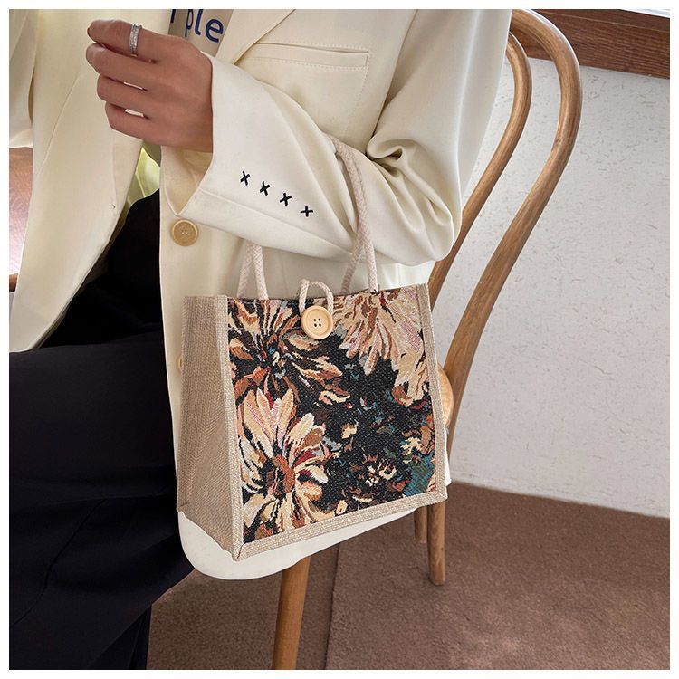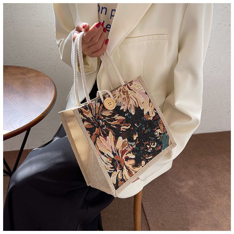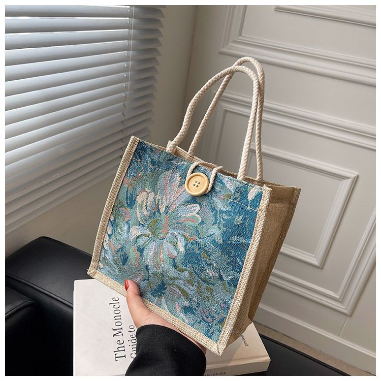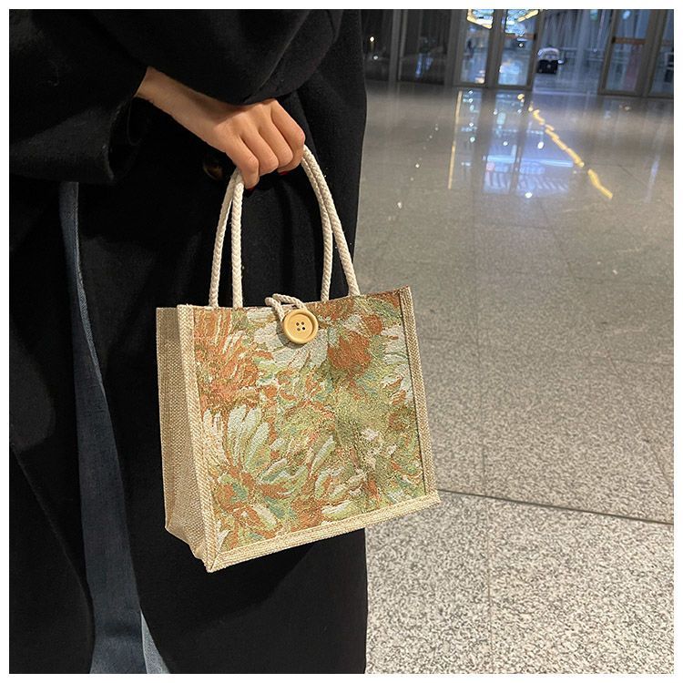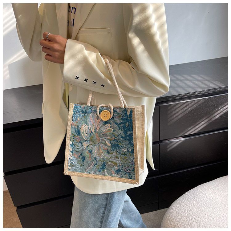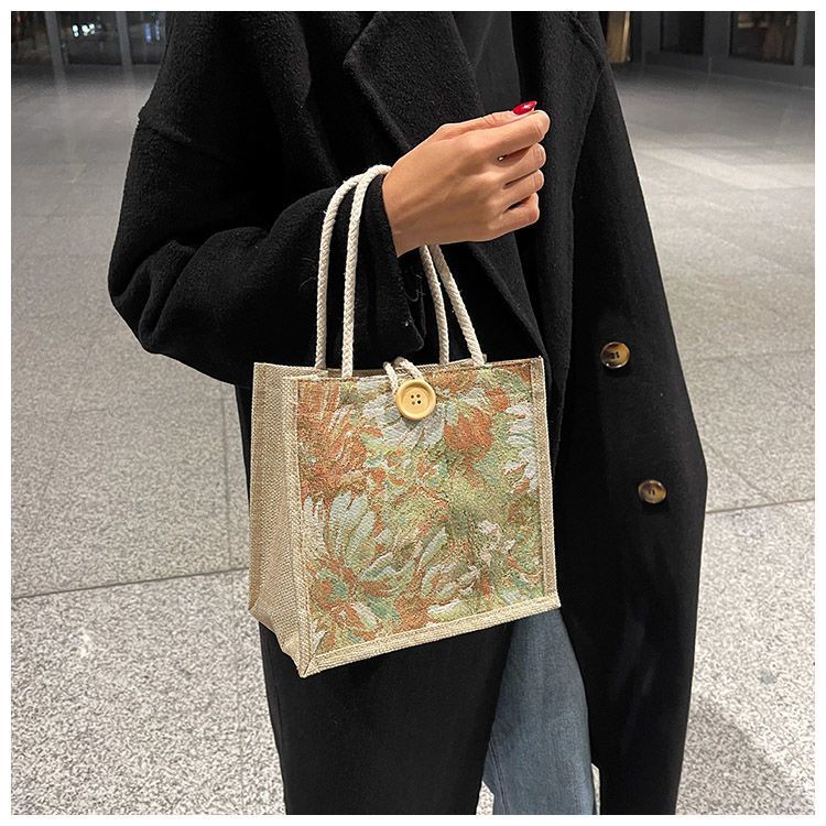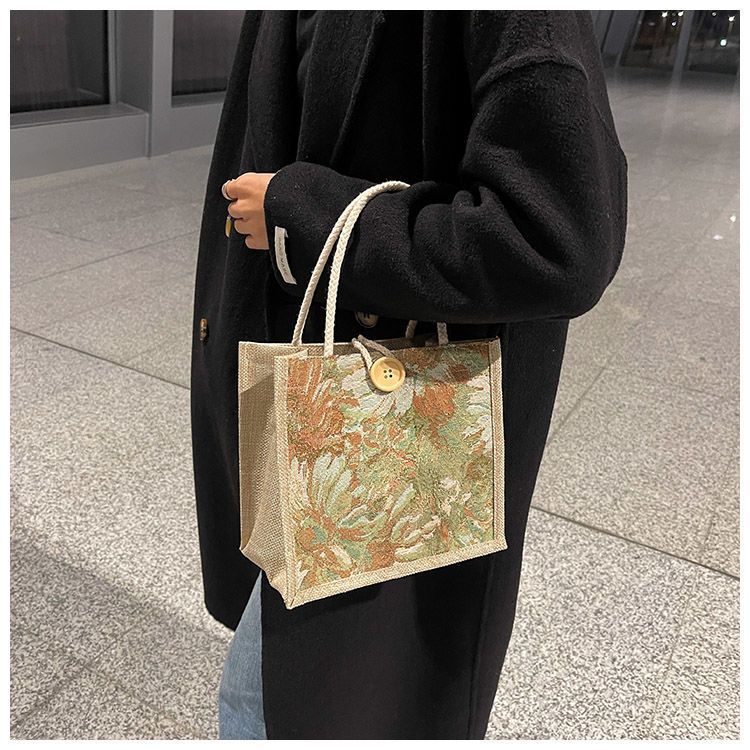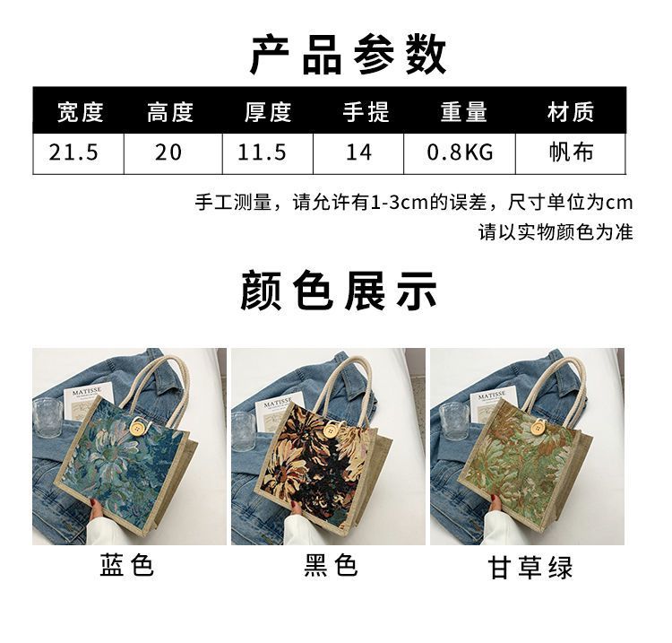 学生包包韩版手提包新款包女时尚日系亚麻版ins饭盒帆布便当