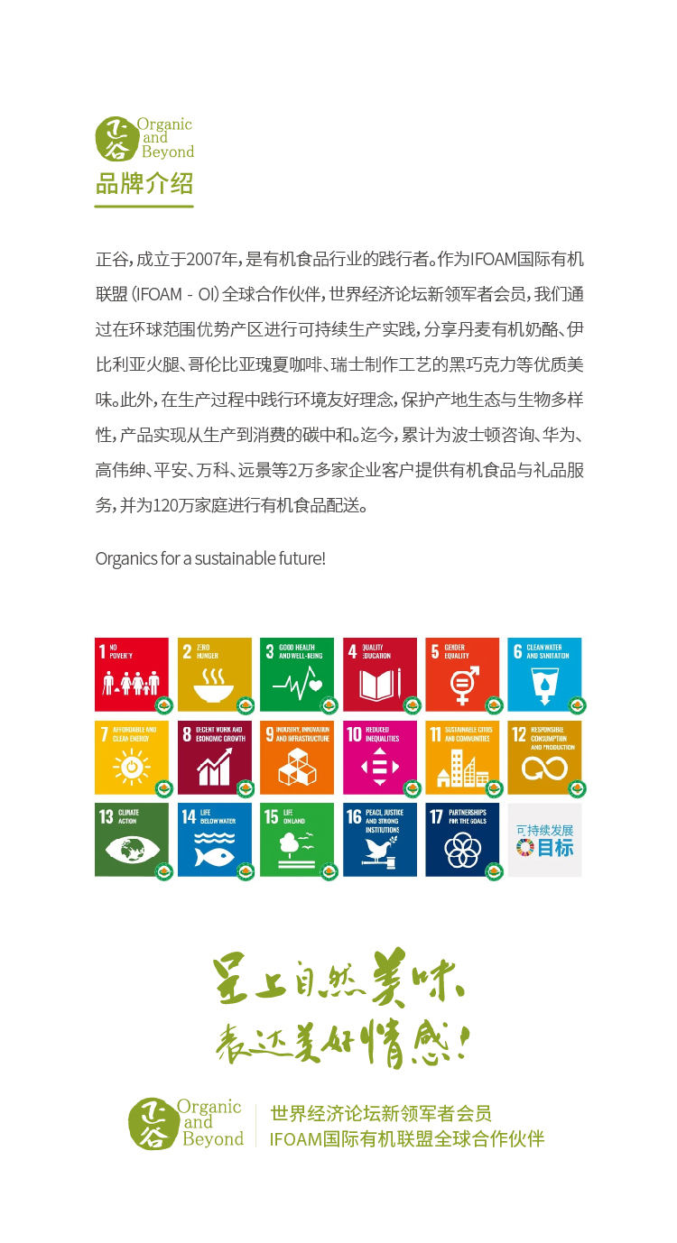 正谷成立于2007年 是国内有机食品行业践行者 专注于与更多人分享优质有机食品与有机理念 在世界范围内建立正谷标准合作农场 进行有机生产实践 通过正谷卡 分享从田间到餐桌的全球优质有机食材 以有机食物传递真挚情谊 以可持续的生产与消费关注人与自然的生存与发展