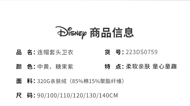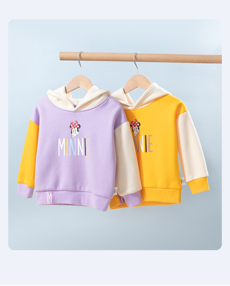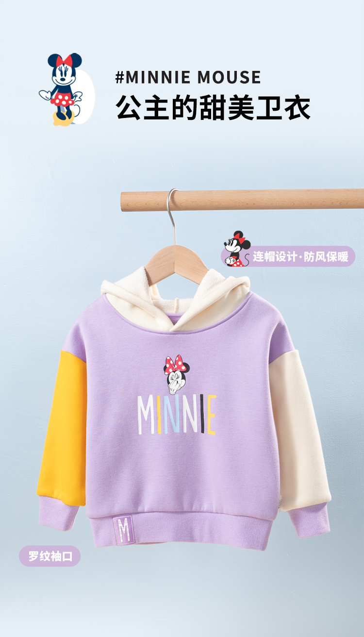 【商场同款】迪士尼童装女童连帽套头时尚休闲卫衣春秋新款加绒保暖宝宝上衣223DS0759