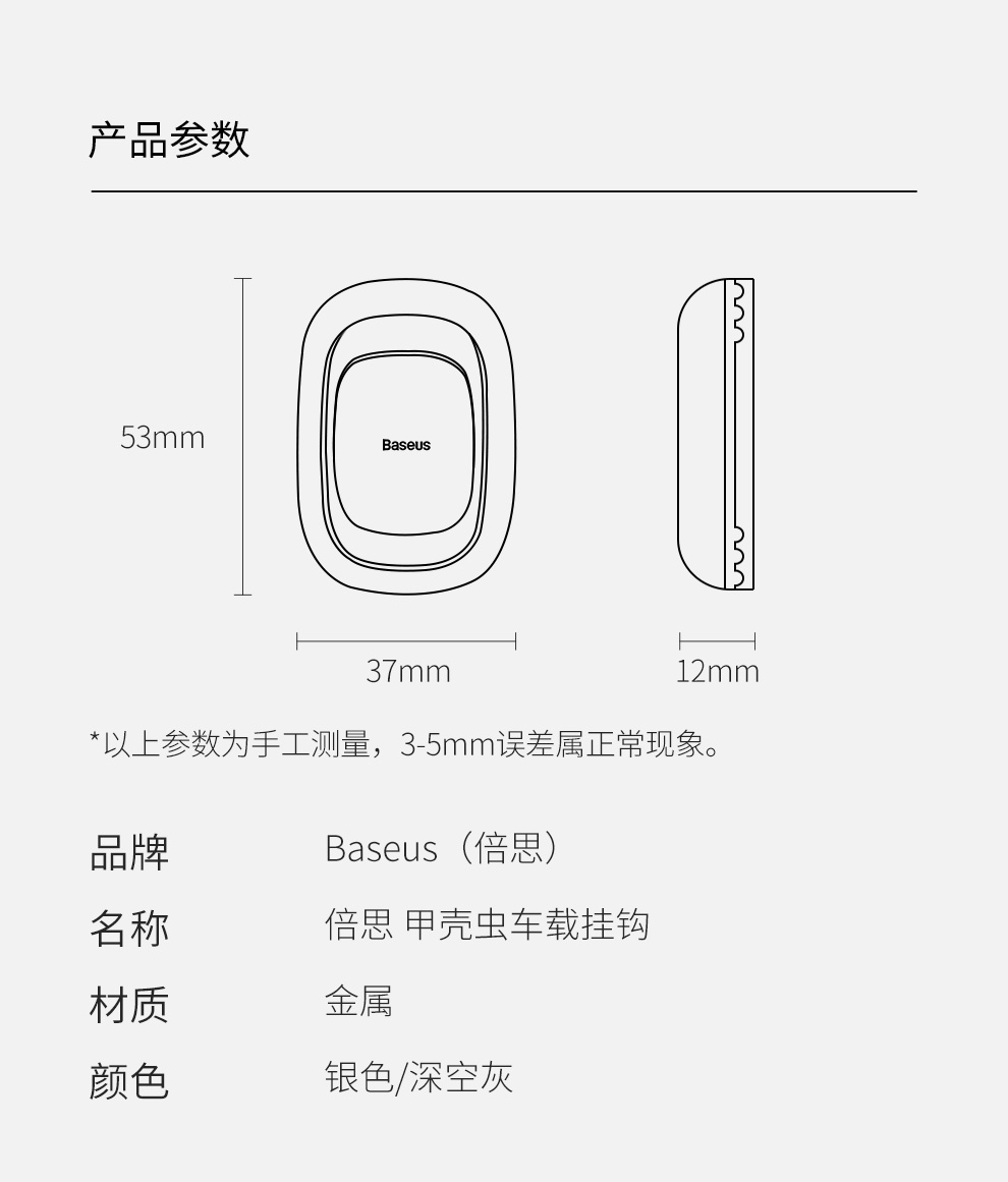 【十一专享】倍思 甲壳虫车载挂钩(两个装)