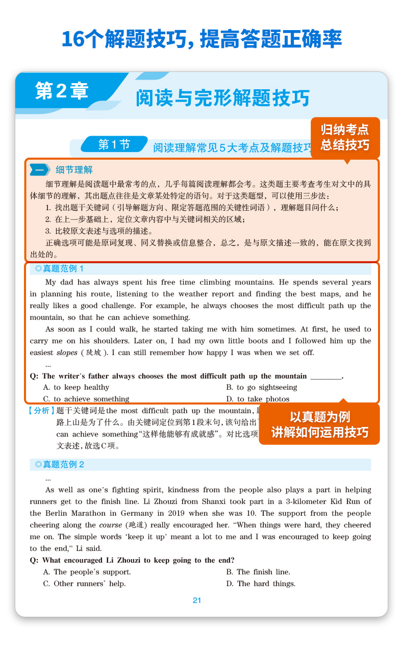 7. 提供16大解题技巧,手把手教学生怎么读文章,怎么理解文章,进而提高答题正确率;