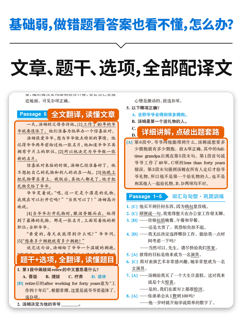3. 文章、题干、选项全部配有译文,基础弱的学生也能看懂错在哪里;