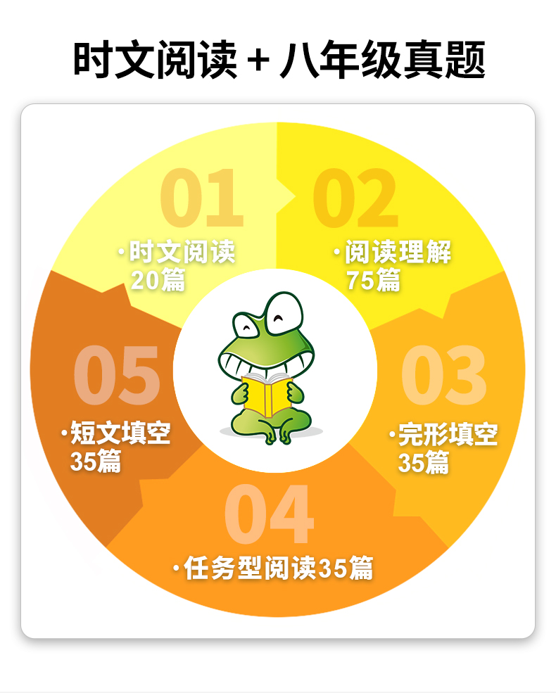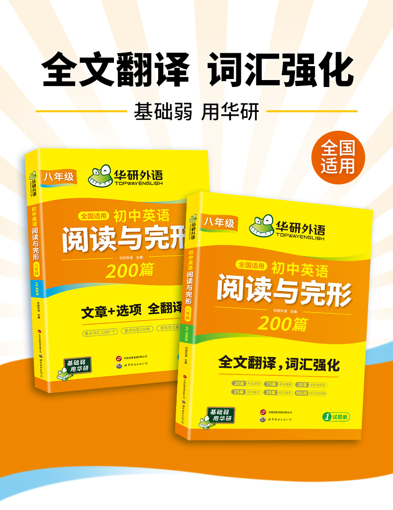 全国适用;英语基础薄弱,需要在阅读与完形上提升的八年级学生;看不懂文章的八年级学生;需要分类训练阅读四选一、完形填空、任务型阅读或短文填空的八年级学生;需要强化阅读词汇和句型的八年级学生;在各初中上课的英语老师;与中考英语相关的培训机构师生。