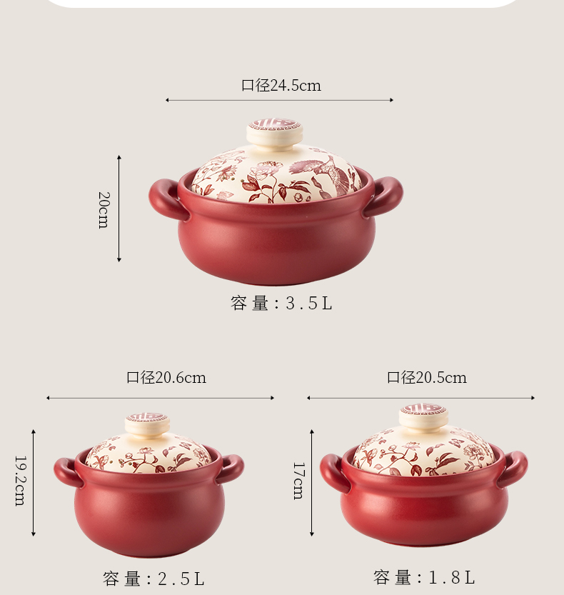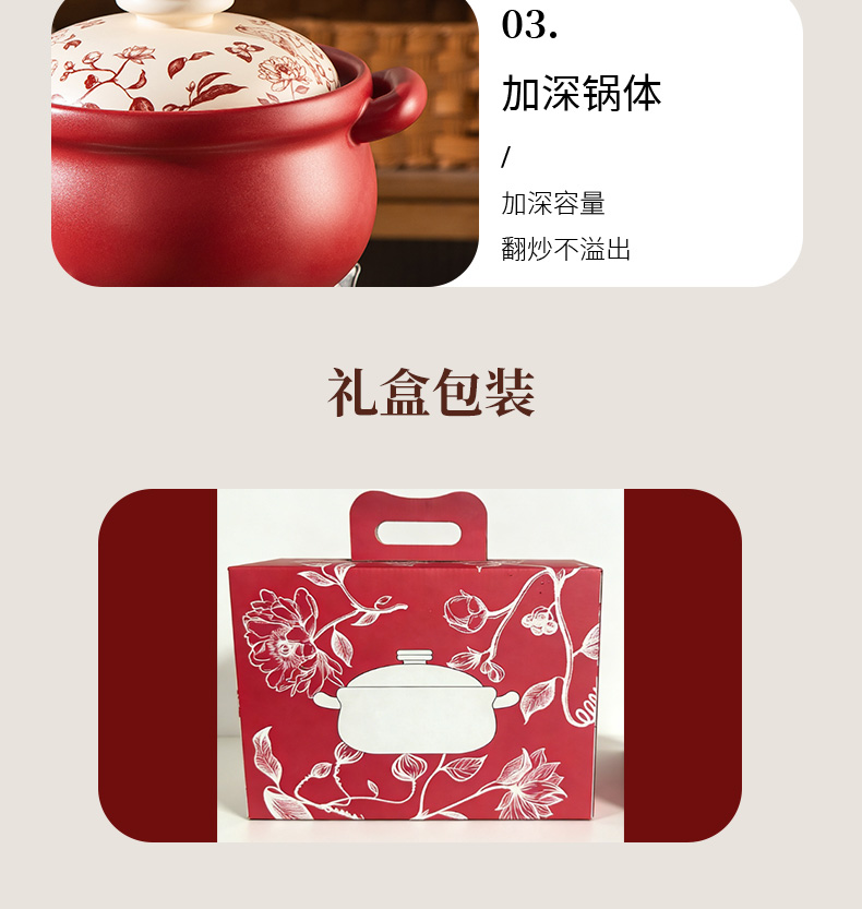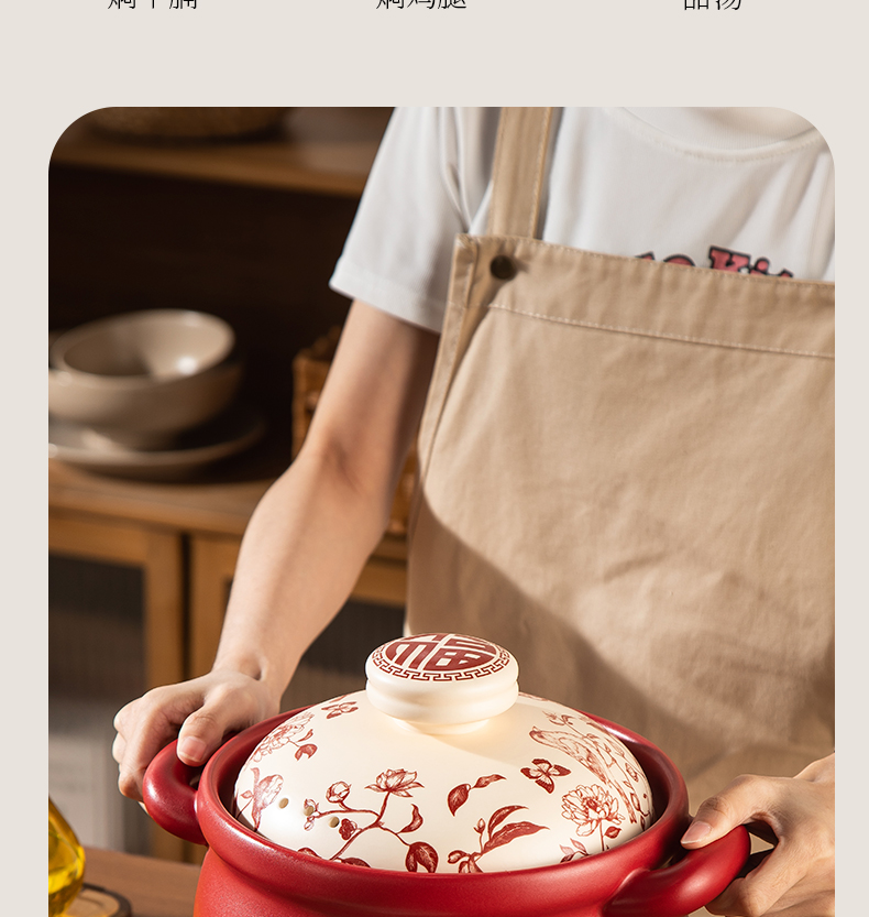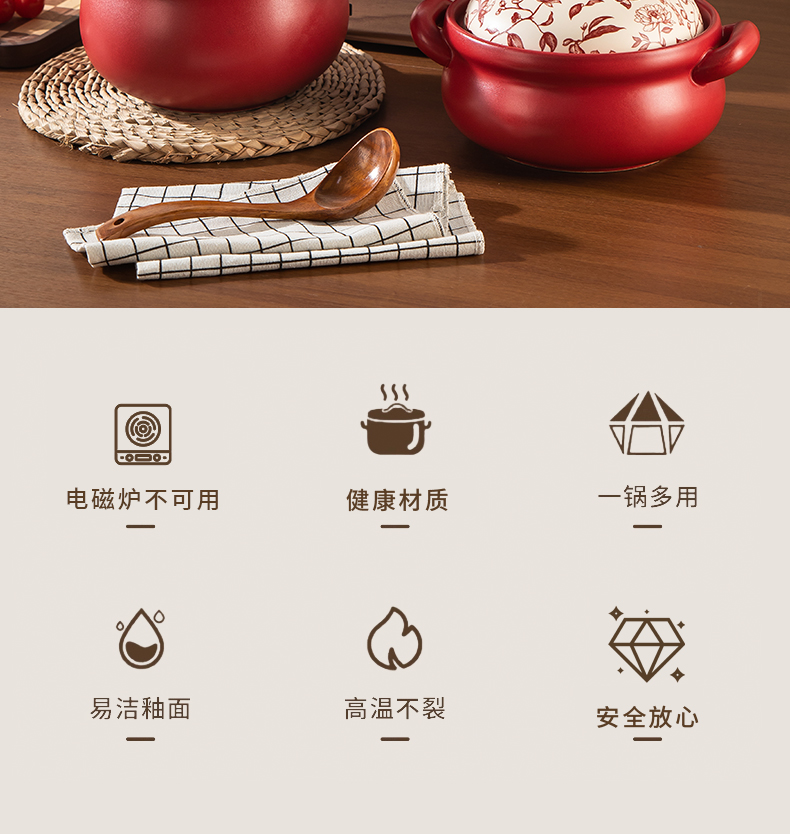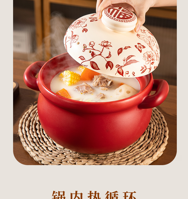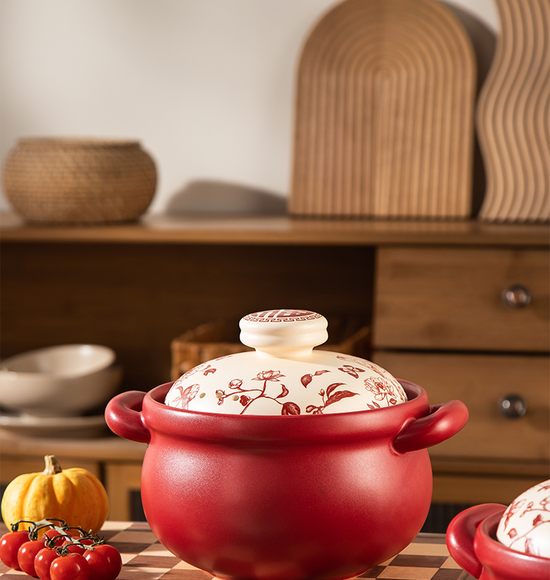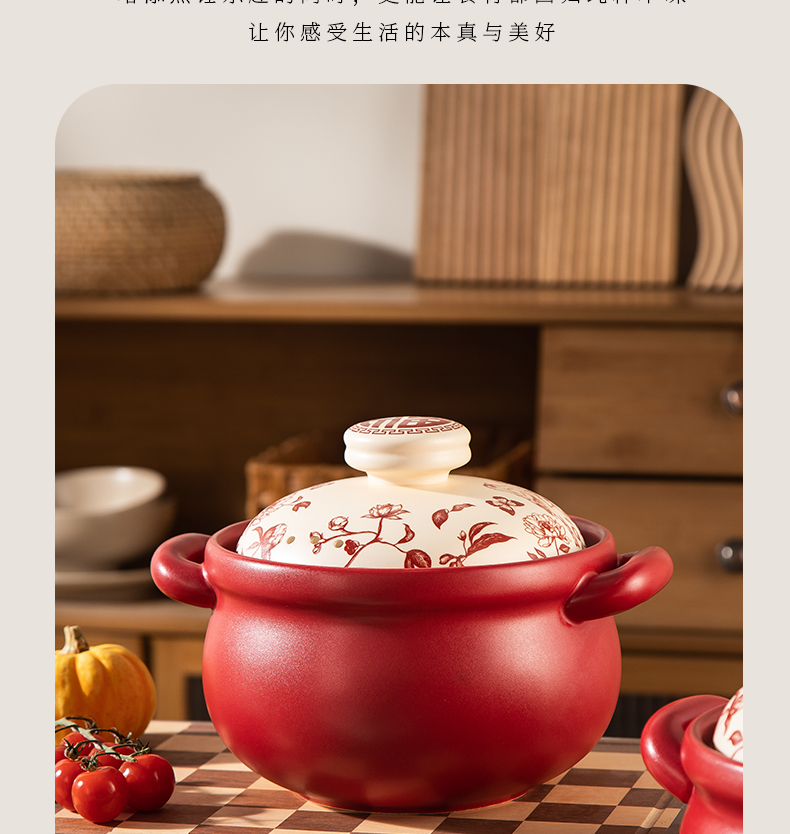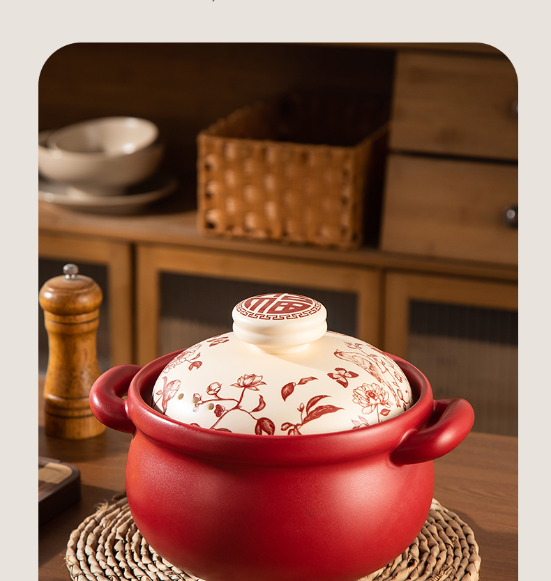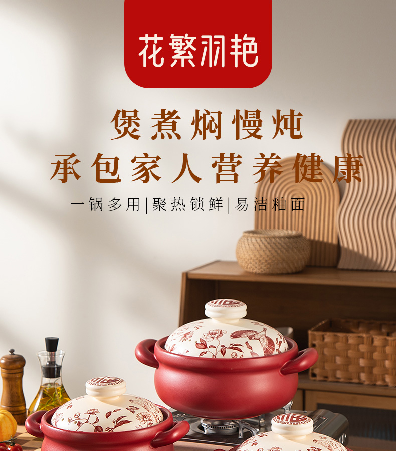 【花繁羽艳】2026新款陶煲王中国红陶瓷砂锅煲家用煤气灶专用煲汤炖锅新年送礼