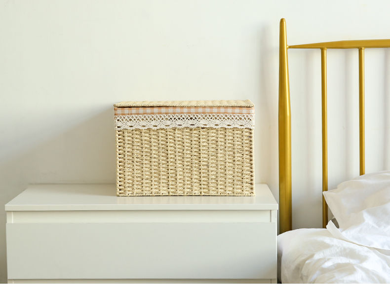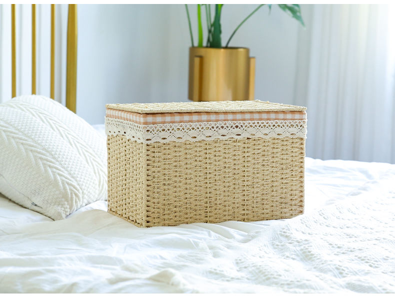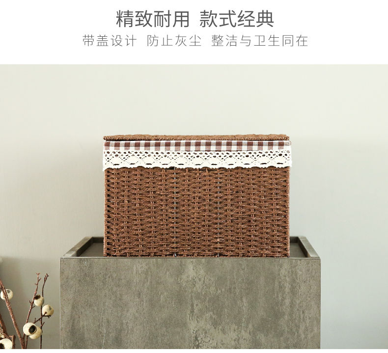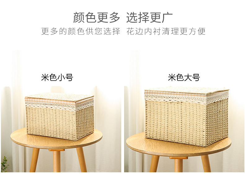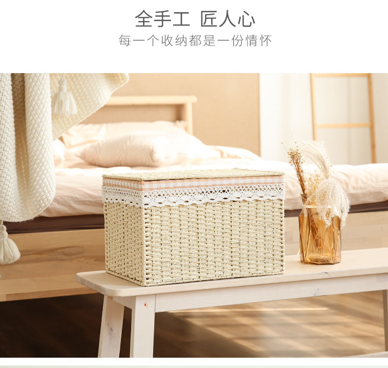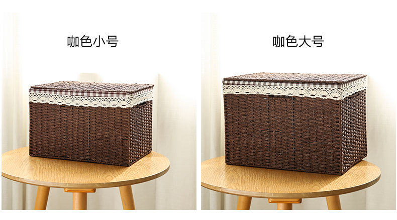 日式草编编织收纳箱杂物整理箱储物箱有盖大号置物衣服玩具收纳箱