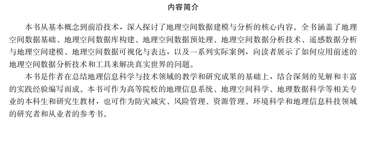 地理空间数据建模与分析 张敏,米婕,戴志军编 著北本:中国建材工业出版社,20245 ISBN 9787516038697