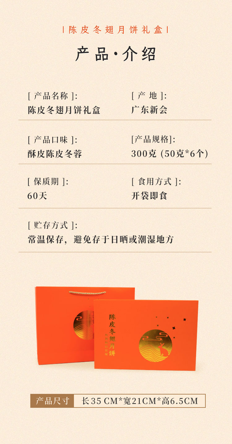 柑天下|正宗新会陈皮冬翅月饼300克/盒广式冬瓜翅糕点中秋送礼