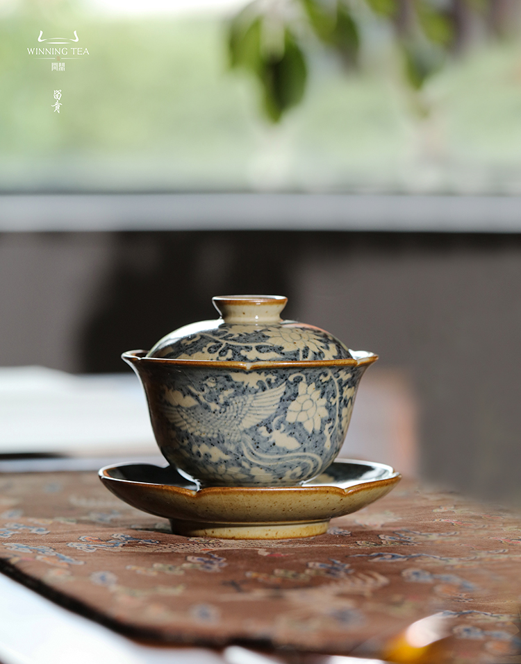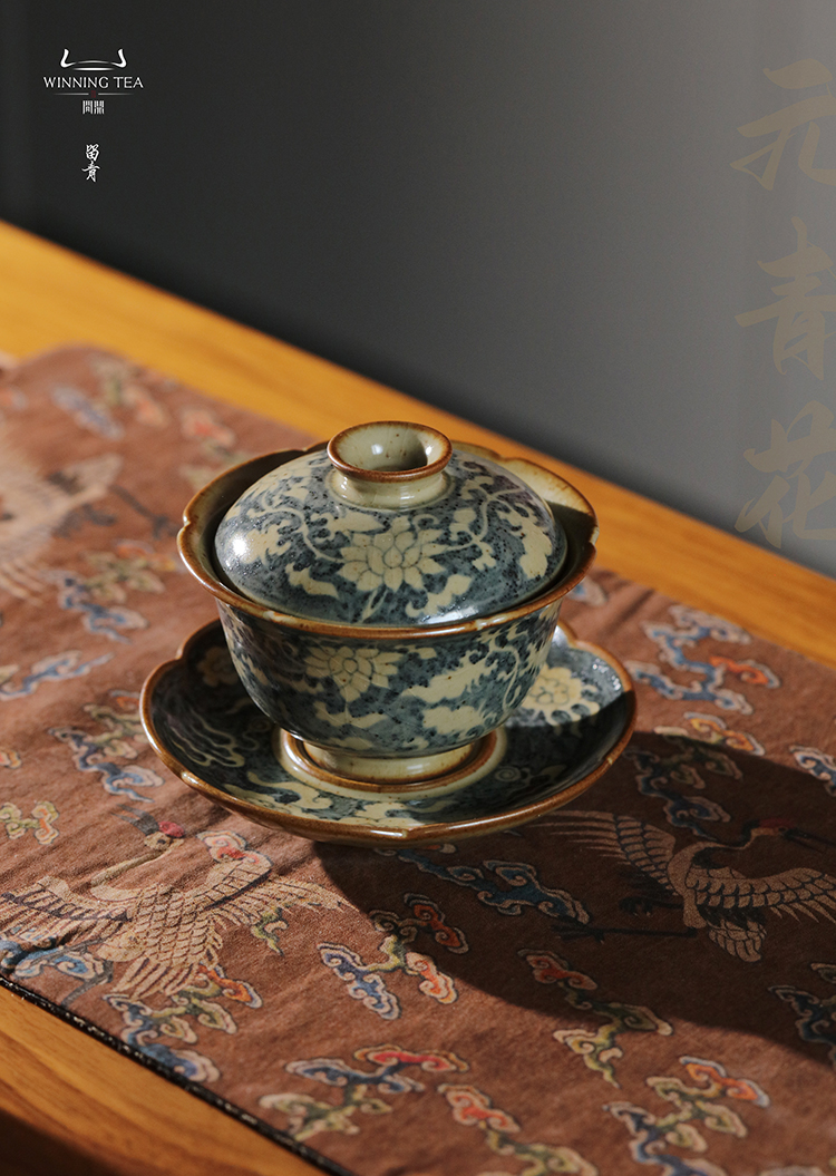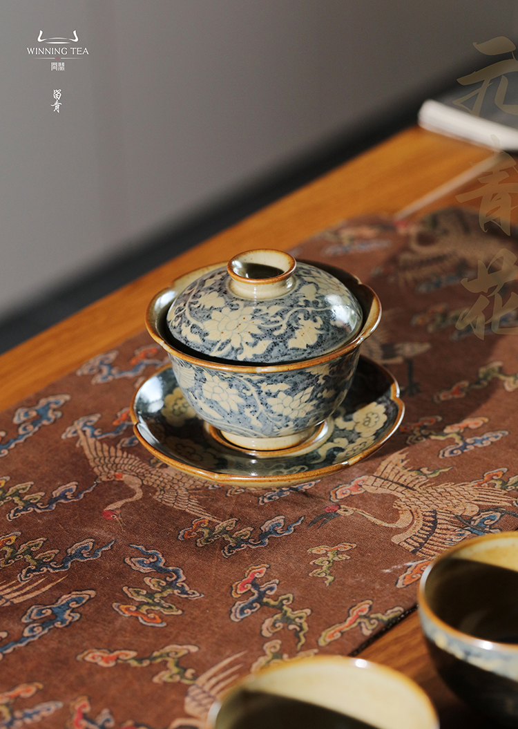 问鼎旗下留青汝瓷椒唐清音盖碗(凤凰于飞)