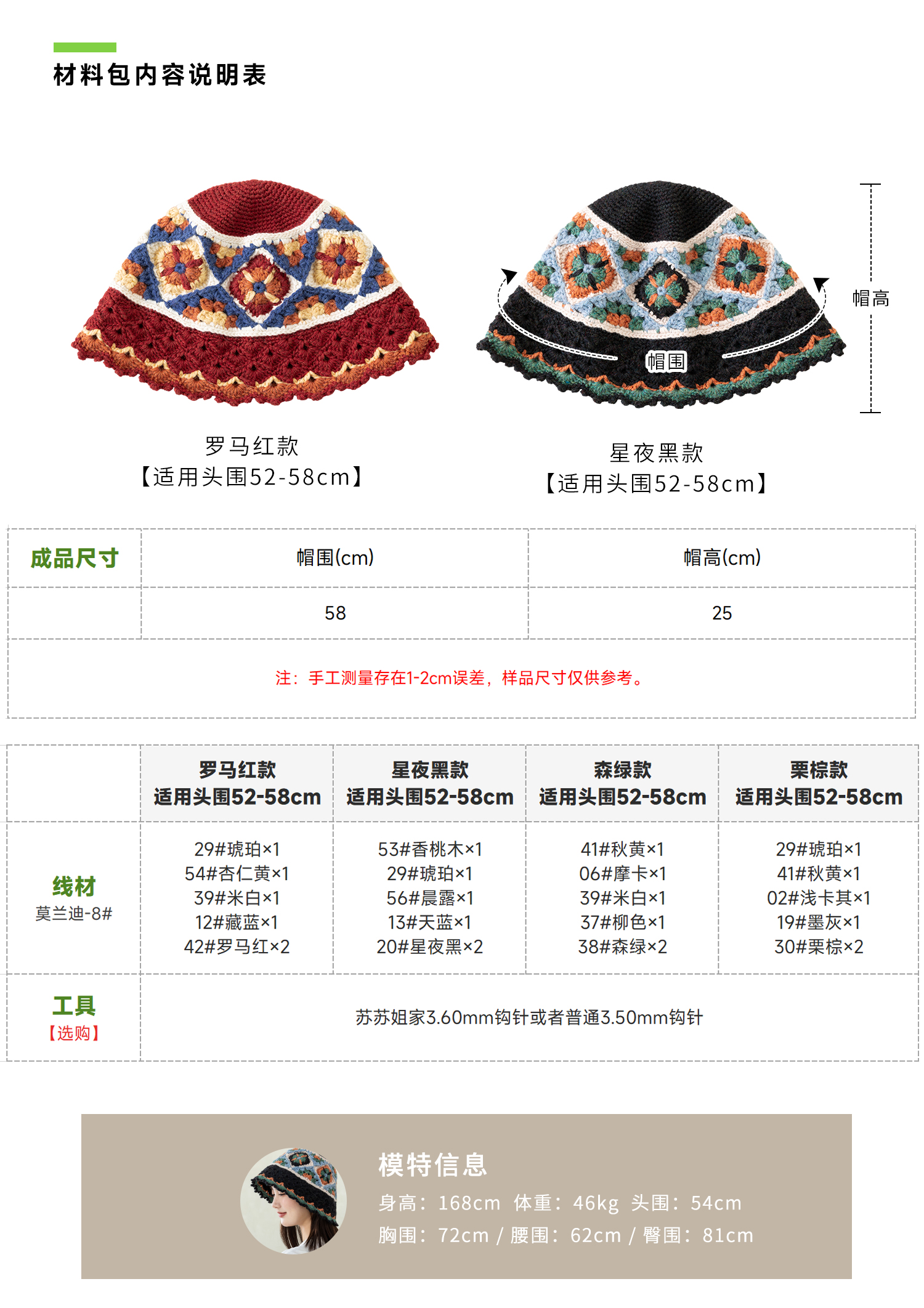 苏苏姐家岁暖菱格渔夫帽手工diy编织毛线团帽子钩针粗羊毛材料包