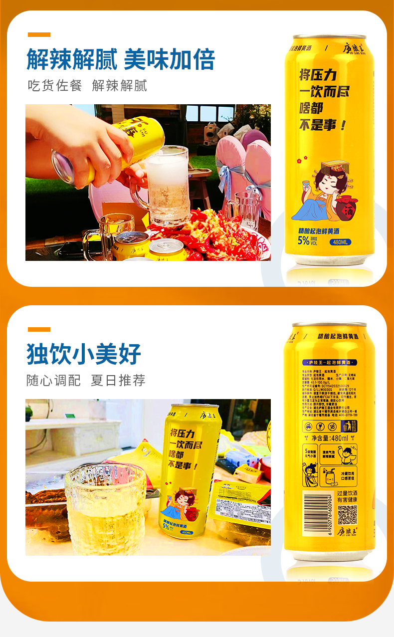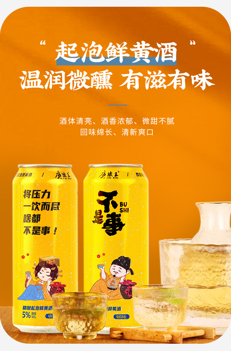 【房县黄酒】庐陵王黄酒5度低度微醺黄酒气泡酒480ml*12 MXY