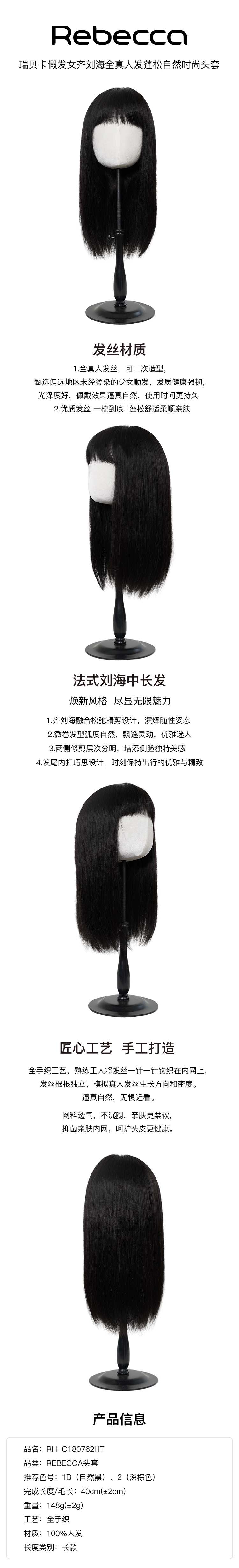 Rebecca瑞贝卡假发女齐刘海中长发全真人发蓬松自然时尚头套