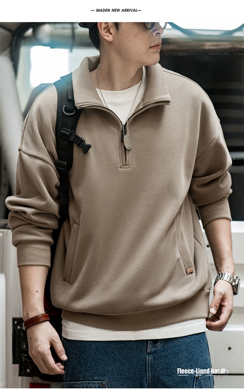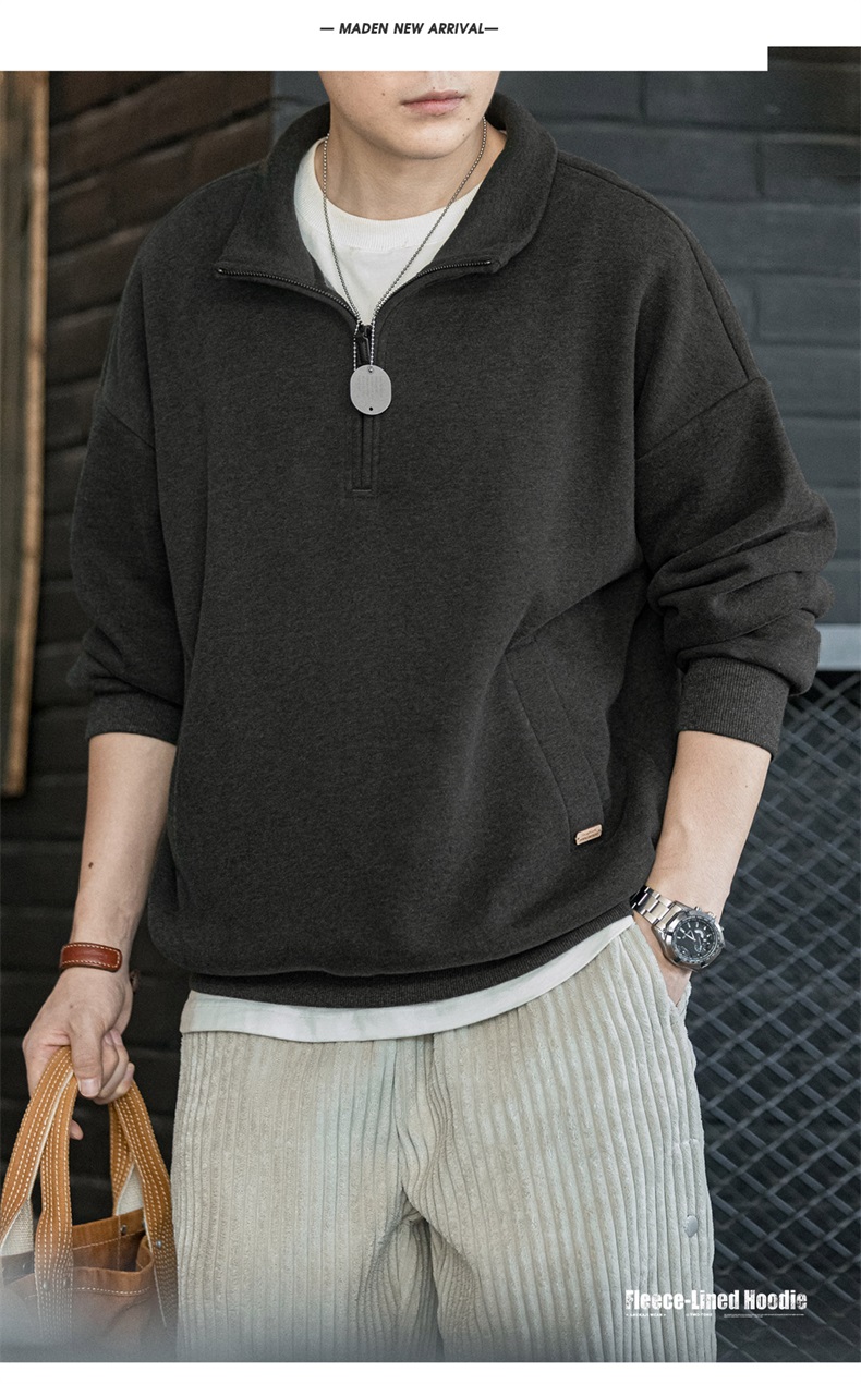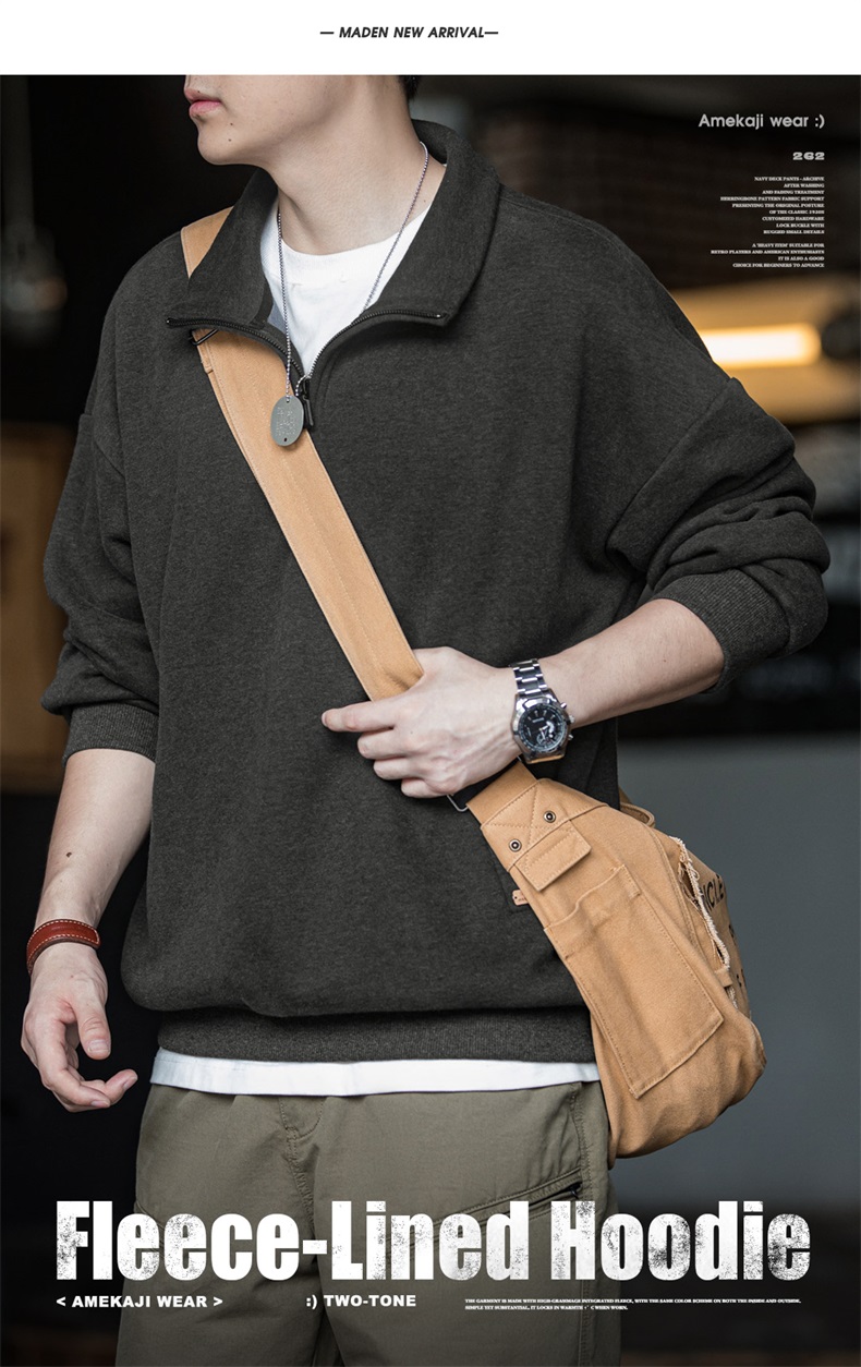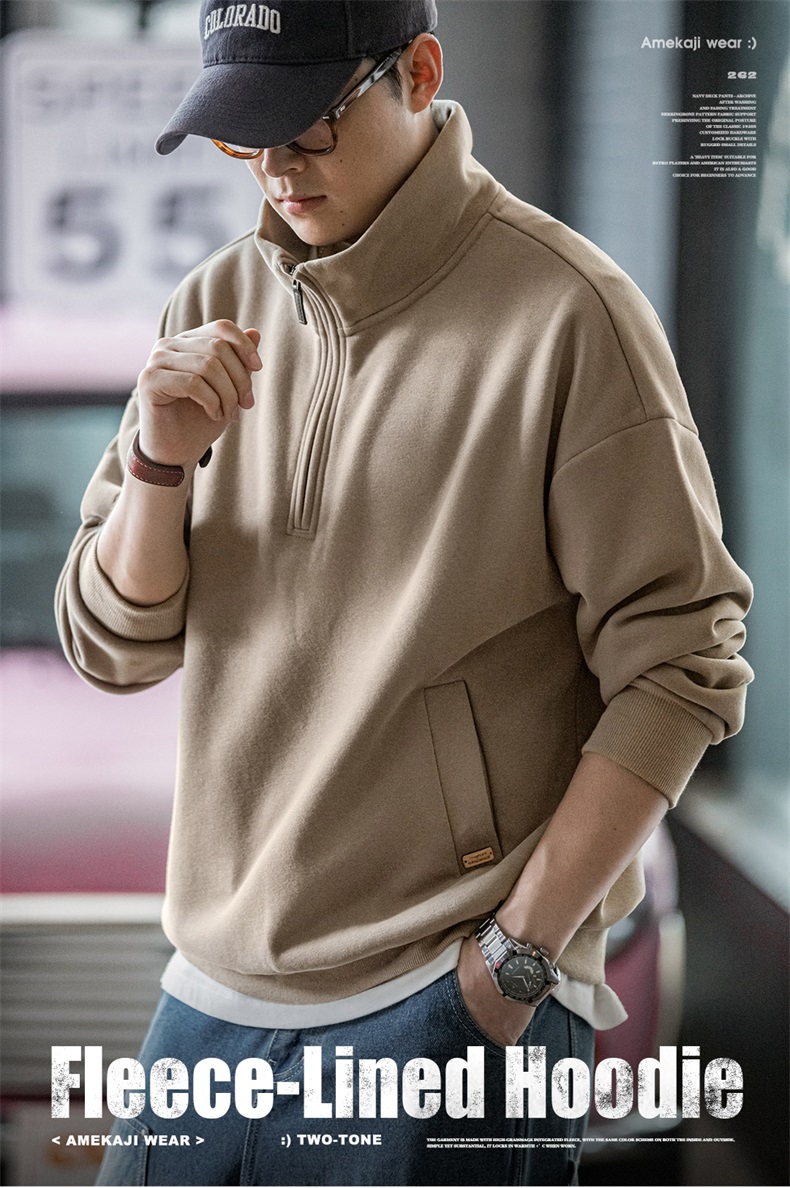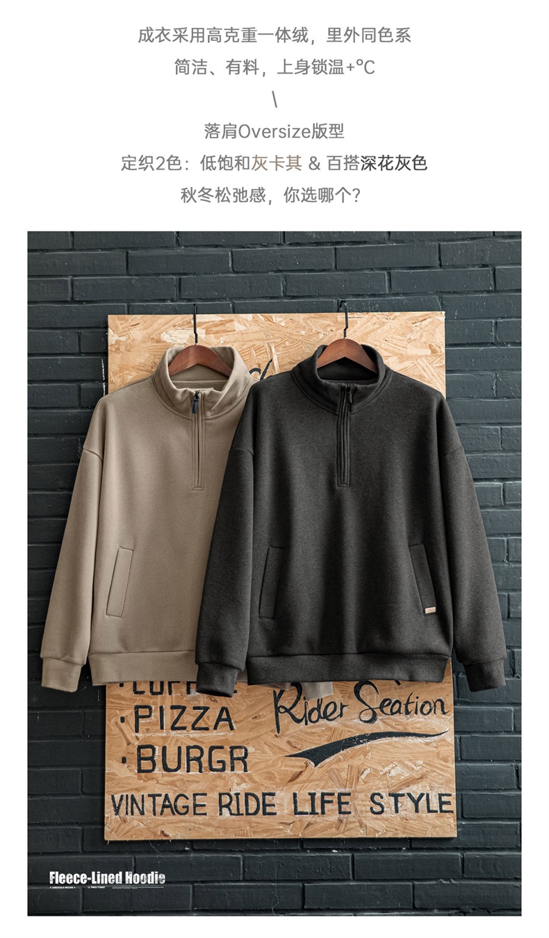 工装优选美式休闲半拉链立领加绒卫衣cleanfit摇粒绒套头上衣男秋