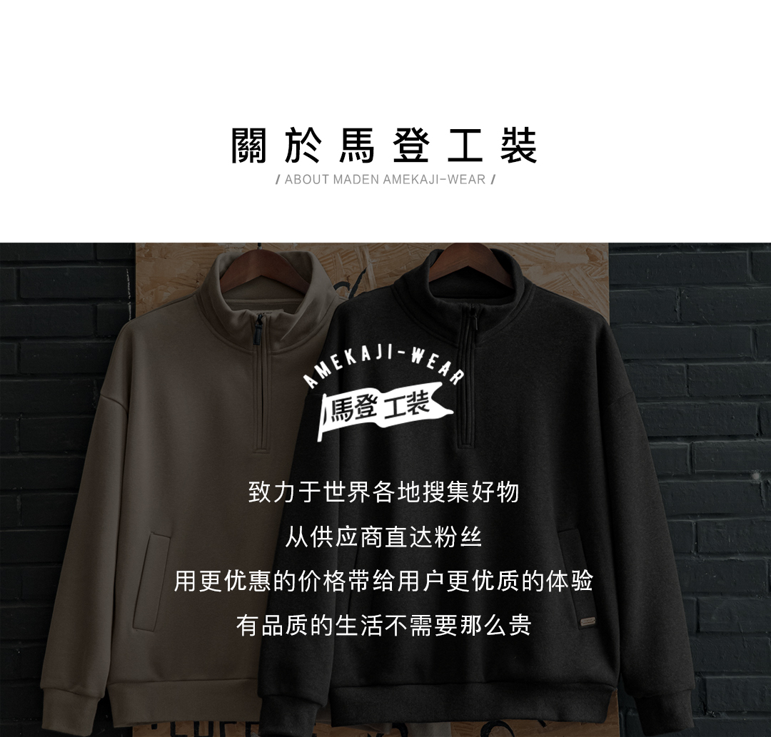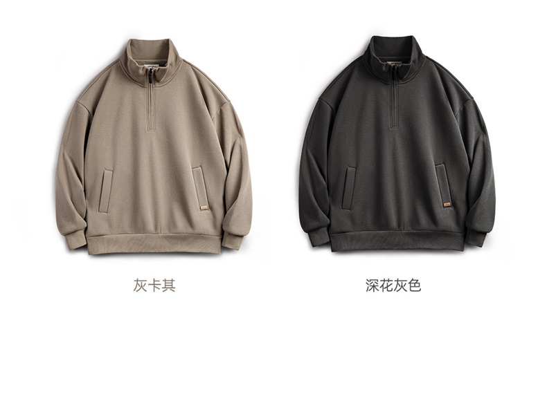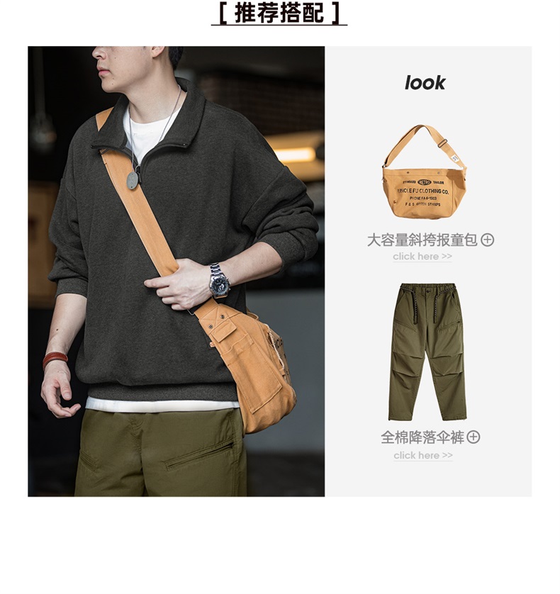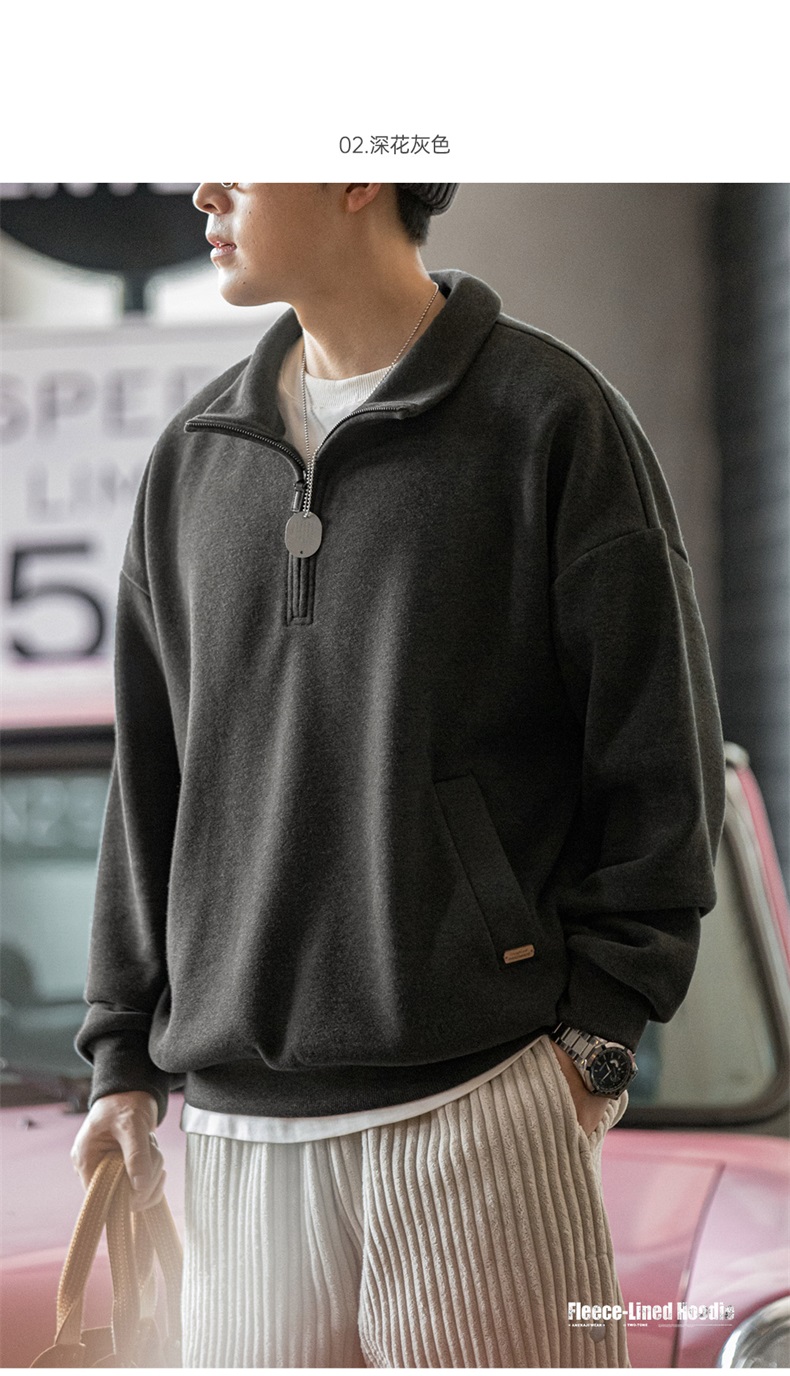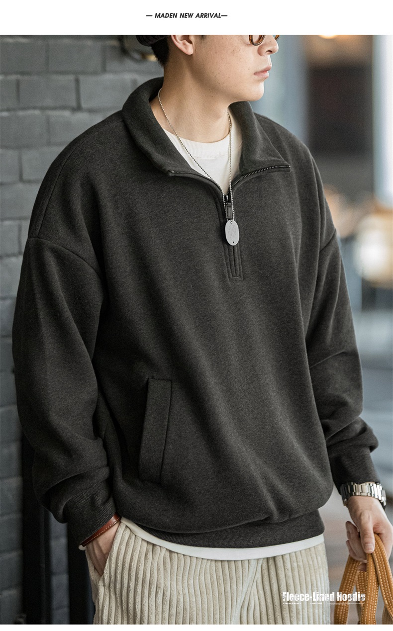 工装优选美式休闲半拉链立领加绒卫衣cleanfit摇粒绒套头上衣男秋