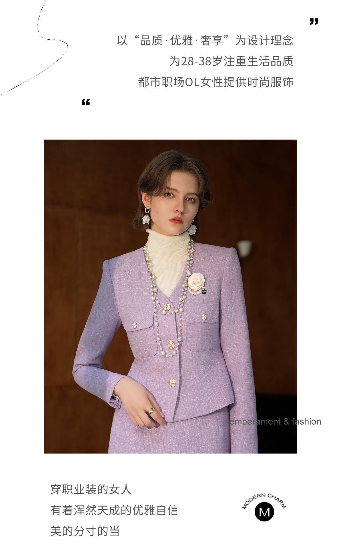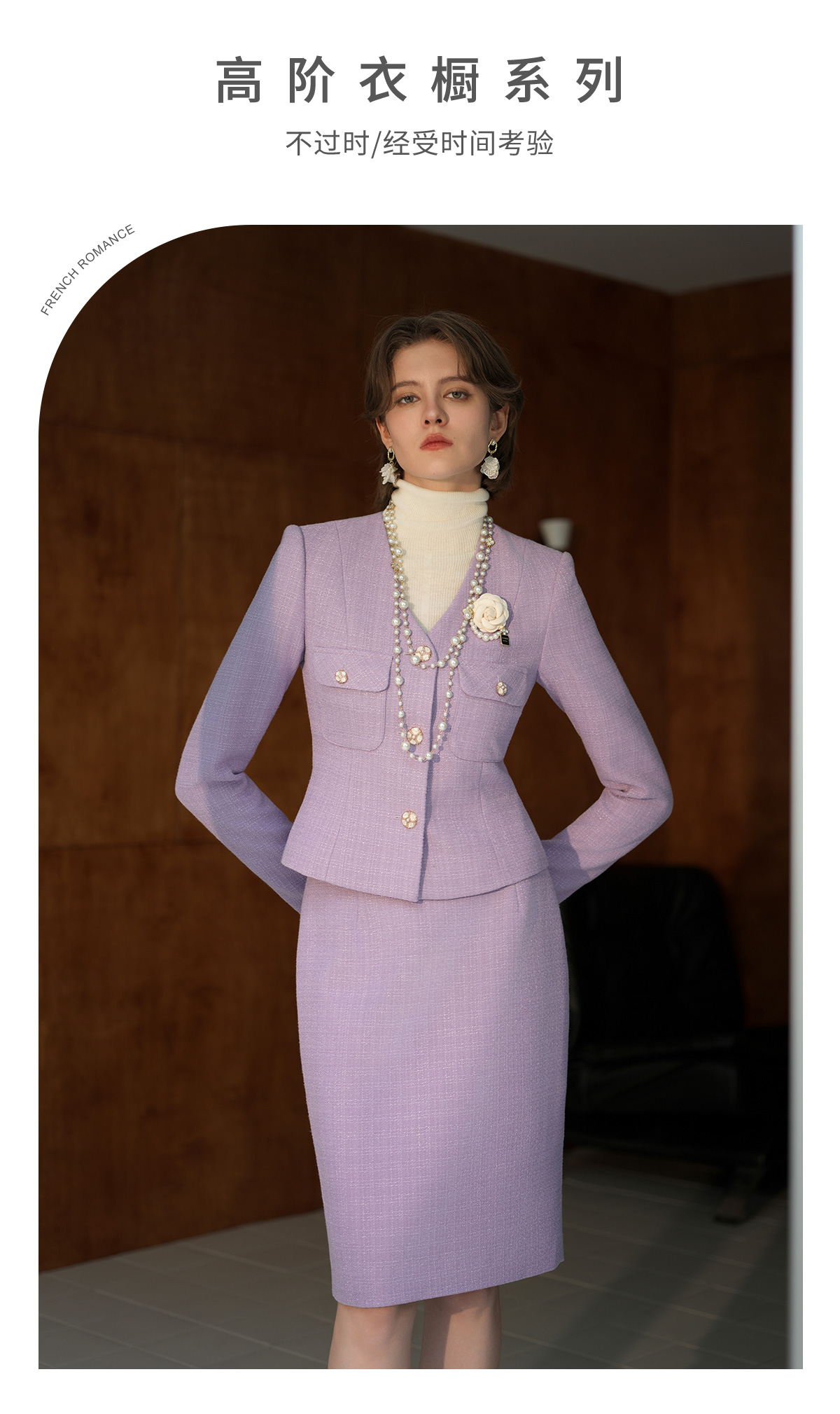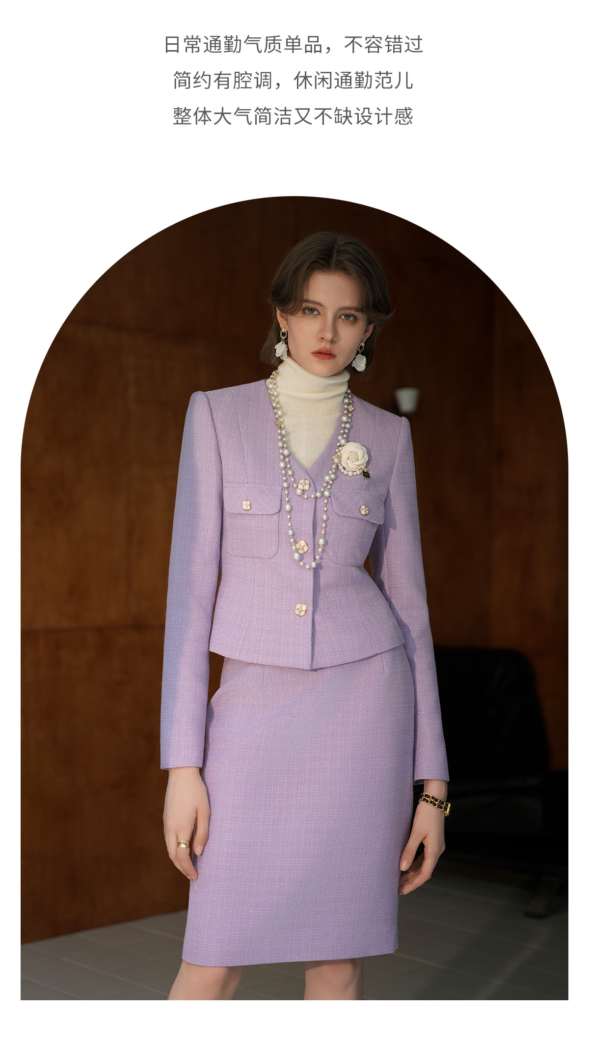 AD紫色小香风套装2024新款女装秋季高端女神范贵妇名媛两件套裙