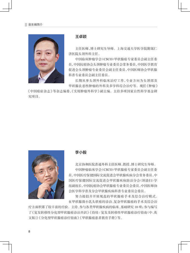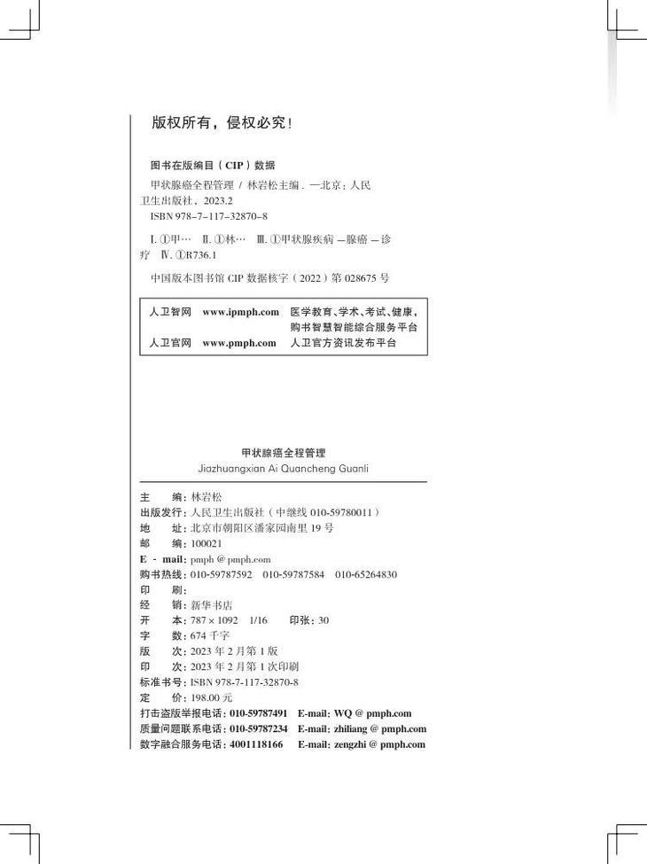 本书是权威作者团队推出的权威专著,基于“肿瘤多学科合作”、“精准医学”以及“个体化”等核心肿瘤治疗理念,精确阐述甲状腺癌的各种治疗方法的适应证和禁忌证、不同TNM分期甲状腺癌的合理治疗方案,并提出经典的治疗病例。随着大量甲状腺癌的涌现,对群体而言、从公共卫生角度看,患者所经历的每一个临床决策,都可以是一个卫生经济学问题,而对患者个人及家庭、医疗资源、社会经济产生影响。本书阐述了甲状腺癌的卫生经济学意义,使包括临床医师在内的更多的人认识到日常临床决策有重要的社会影响力,临床治疗决策者、医疗政策制定者都应该对甲状腺癌有更深层的思索、更全面的视野。 医学是一门永远进步的学科,我们期待本书在以简洁明了的方式介绍甲状腺癌全程诊疗、管理方案的同时,也意识到相关领域仍存在着诸多悬而未决的问题。限于时间、观点差别等因素的影响,本书尚存不足,但是我们希望它能够尽量提供新鲜实用的知识,使读者全方位了解和认识甲状腺癌,也能启发同道深入思考,助力甲状腺癌规范化诊疗和科学研究。