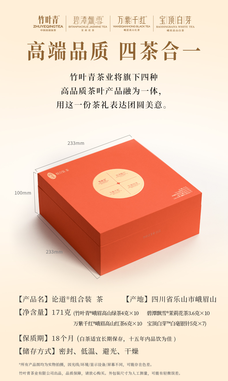 碧潭飘雪茉莉花茶竹叶青绿茶万紫千红红茶宝顶白芽白毫银针特级论道团圆装礼盒茶叶