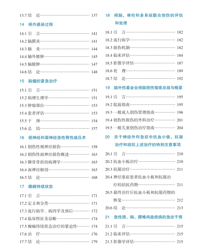·全面:全方位讲解了各种临床常见的神经外科急症,内容涵盖相关的病理生理学、流行病学、病因与发病机制、临床与影像学评估、诊断与鉴别诊断、内外科处理原则、手术步骤与注意事项等。