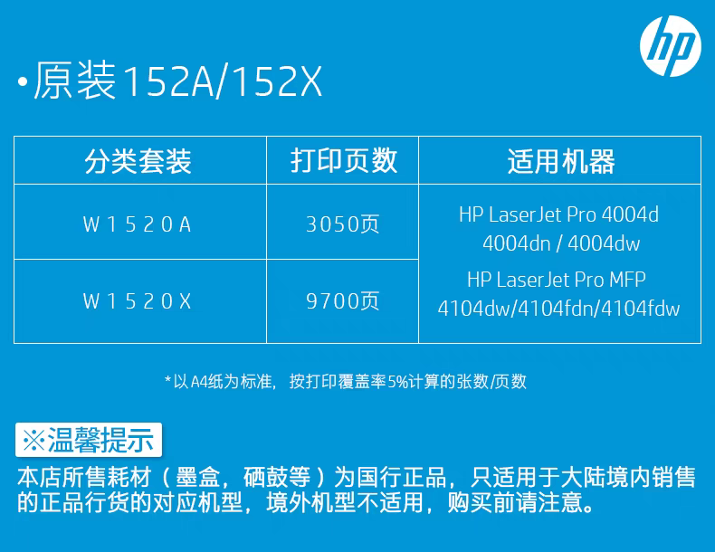 惠普(HP)原装152A黑色硒鼓W1520A粉盒W1520X黑白适用4104dw 4104fdw 4104fdn 4004d 4004dn 4004dw激光打印机