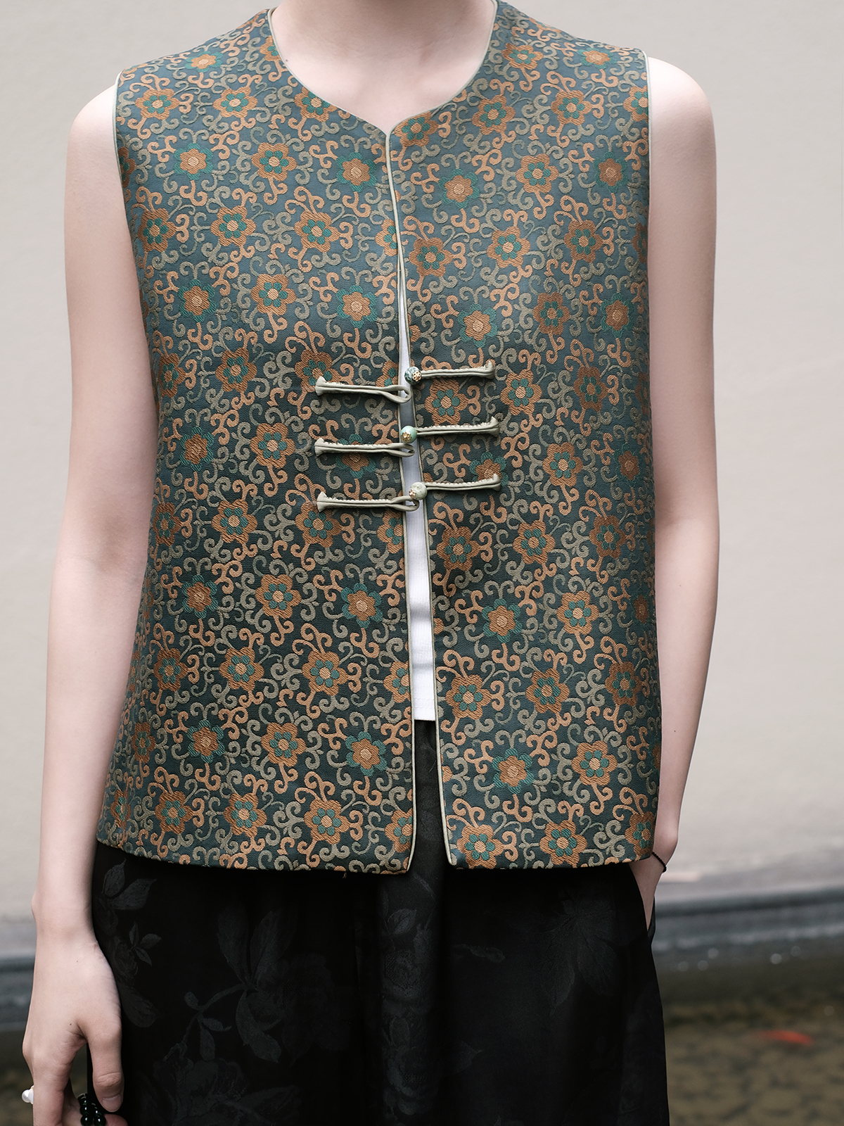 盛唐婧 |真丝宋锦如意团花纹马甲