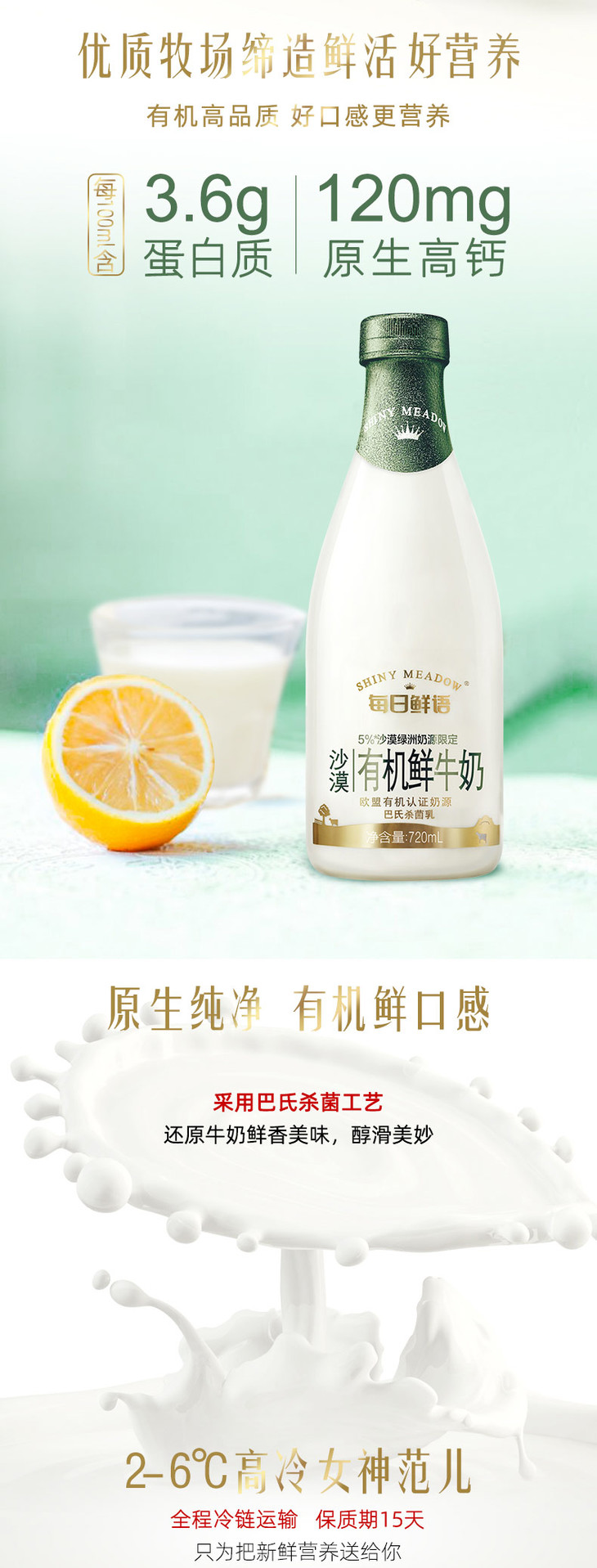 蒙牛每日鲜语原生高品质有机鲜奶720ml/瓶,保质期15天