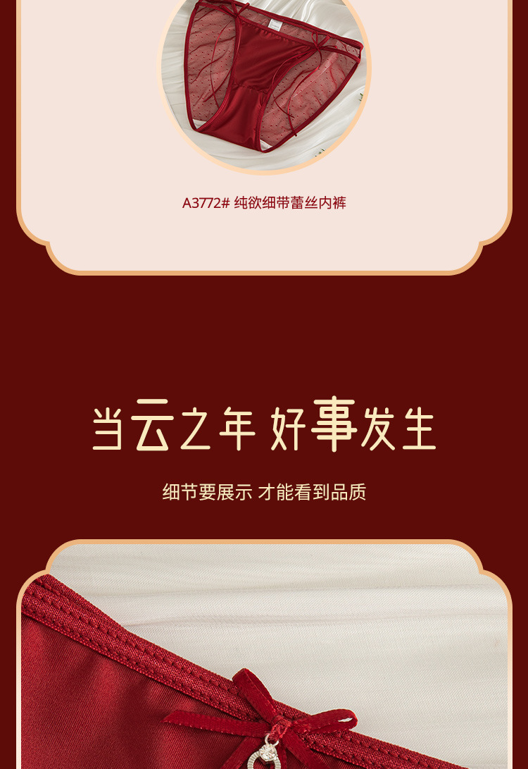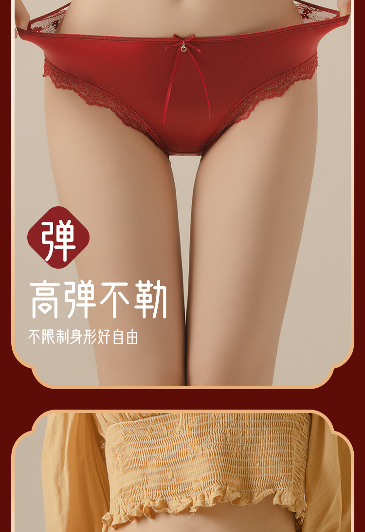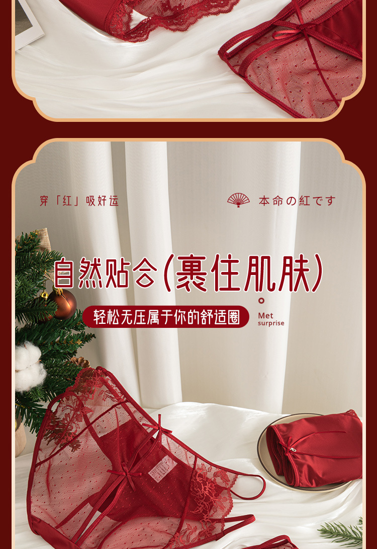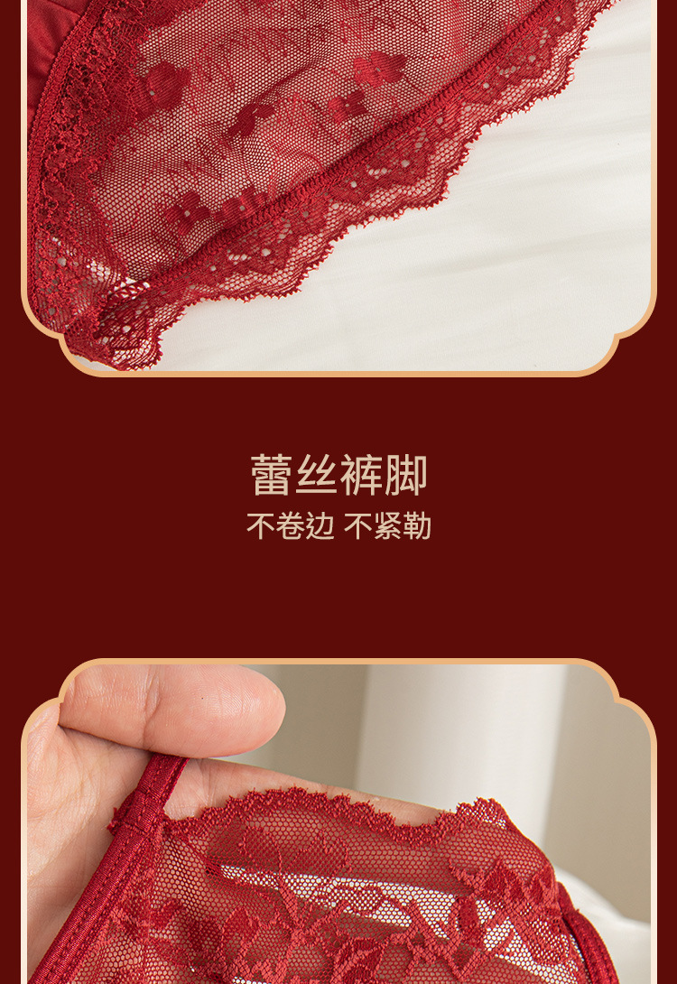 【“红”运当头🔥颜值蕾丝内裤】穿「红」吸好运,潮流新色系安可拉红,穿出性感蜜桃小翘臀, pink日系甜美蕾丝内裤,裸感舒适,超薄透气,女士镂空低腰三角裤露臀新年本命年红内裤L