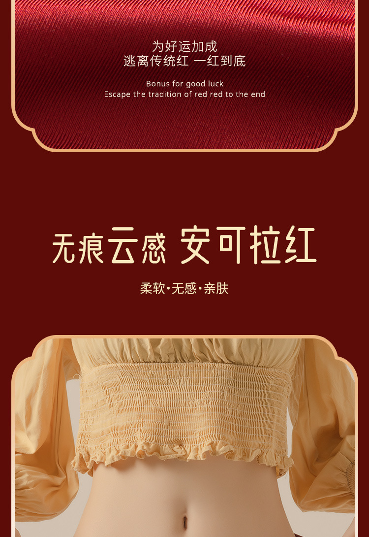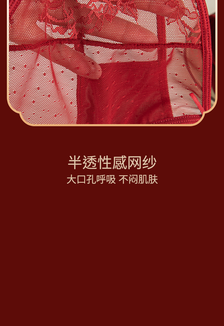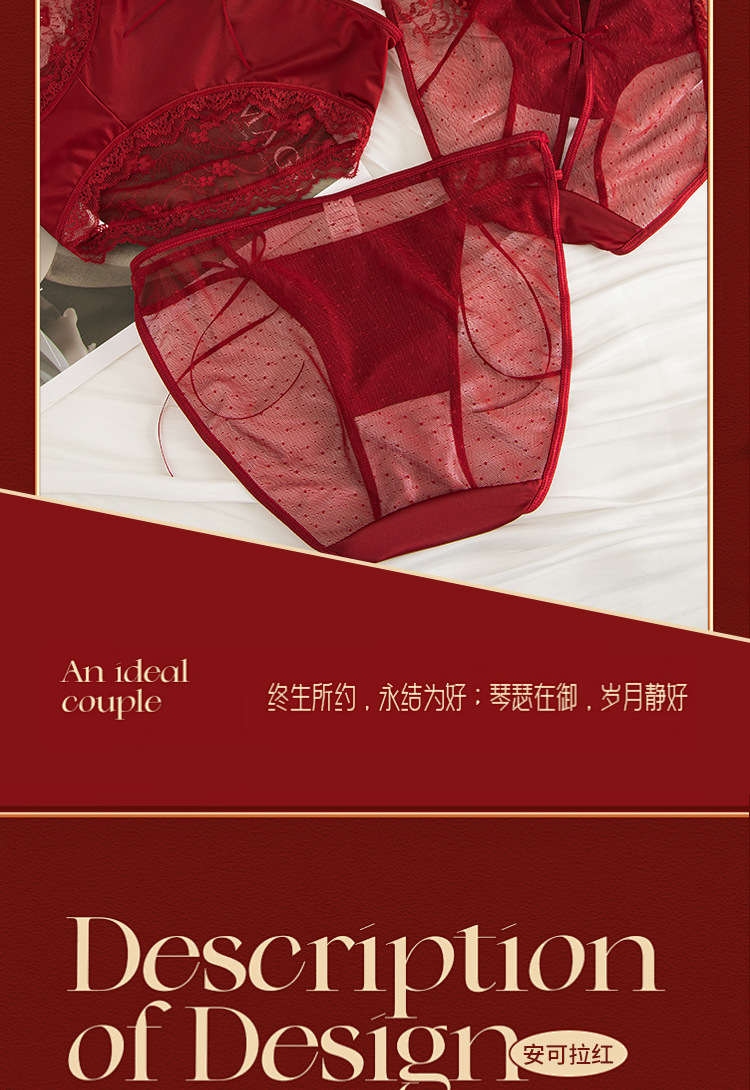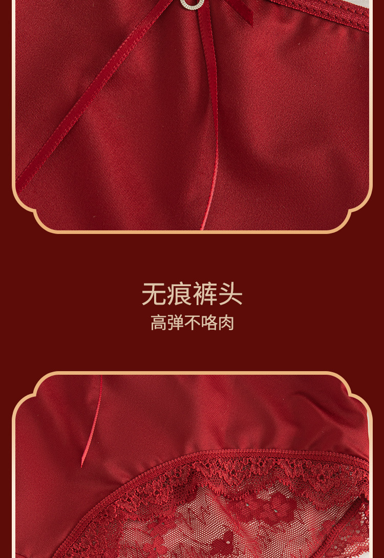 【“红”运当头🔥颜值蕾丝内裤】穿「红」吸好运,潮流新色系安可拉红,穿出性感蜜桃小翘臀, pink日系甜美蕾丝内裤,裸感舒适,超薄透气,女士镂空低腰三角裤露臀新年本命年红内裤L