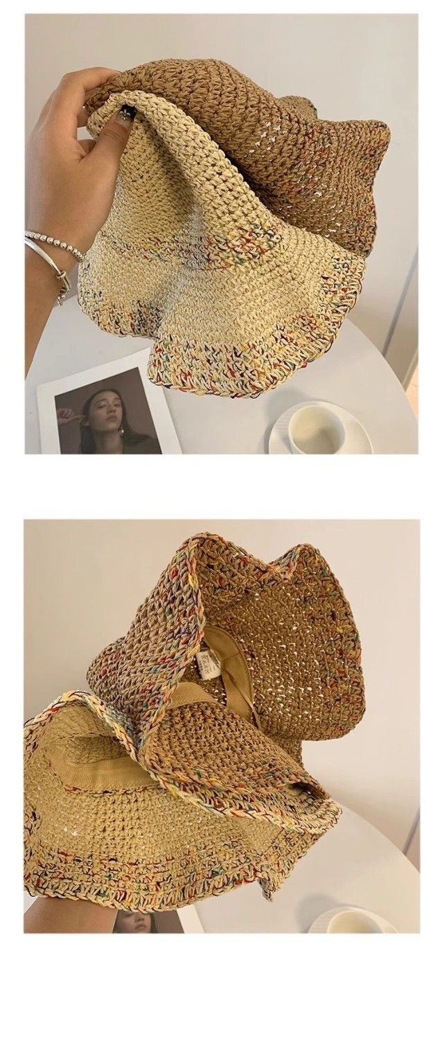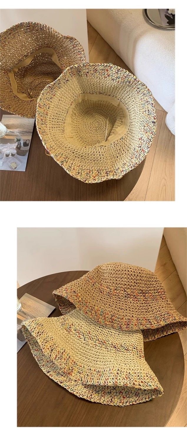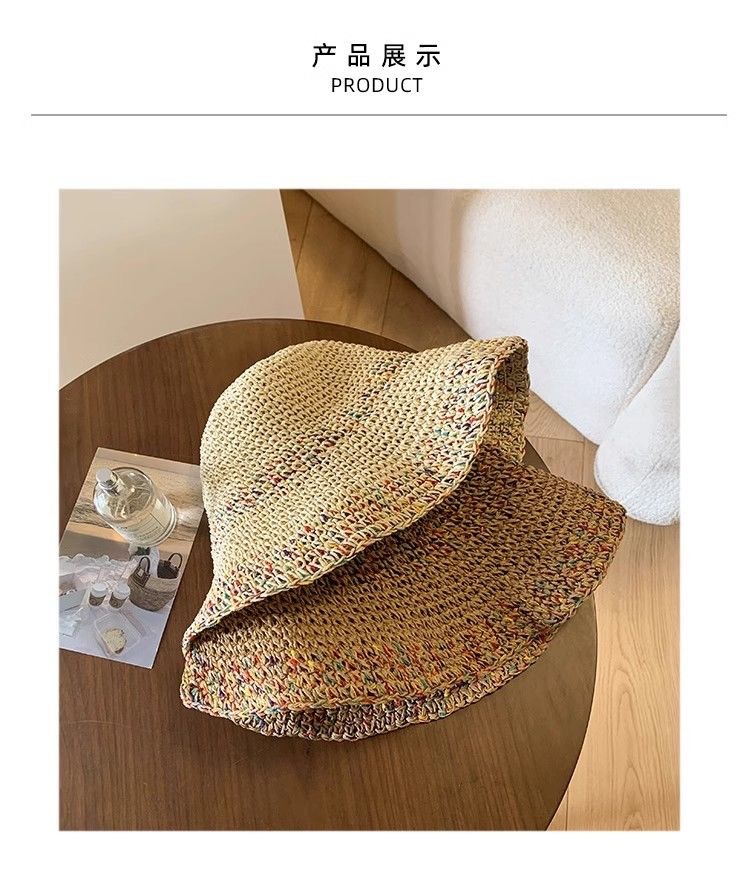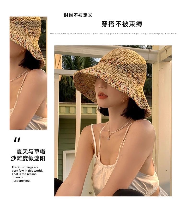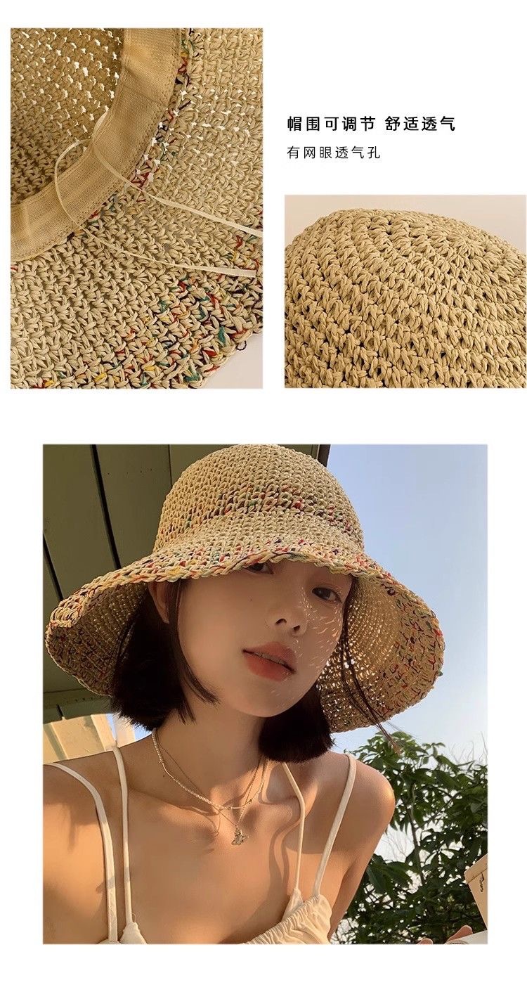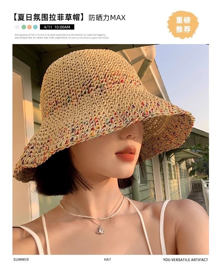 【夏日氛围拉菲草帽]】草编渔夫帽,透气韩版显脸小水桶帽,帽围可调节舒适透气,有网眼透气孔大帽檐遮阳防晒海边草帽子QQ