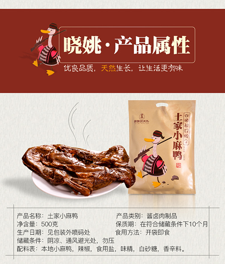 【恩施】晓姚农夫 土家小麻鸭 500g/袋