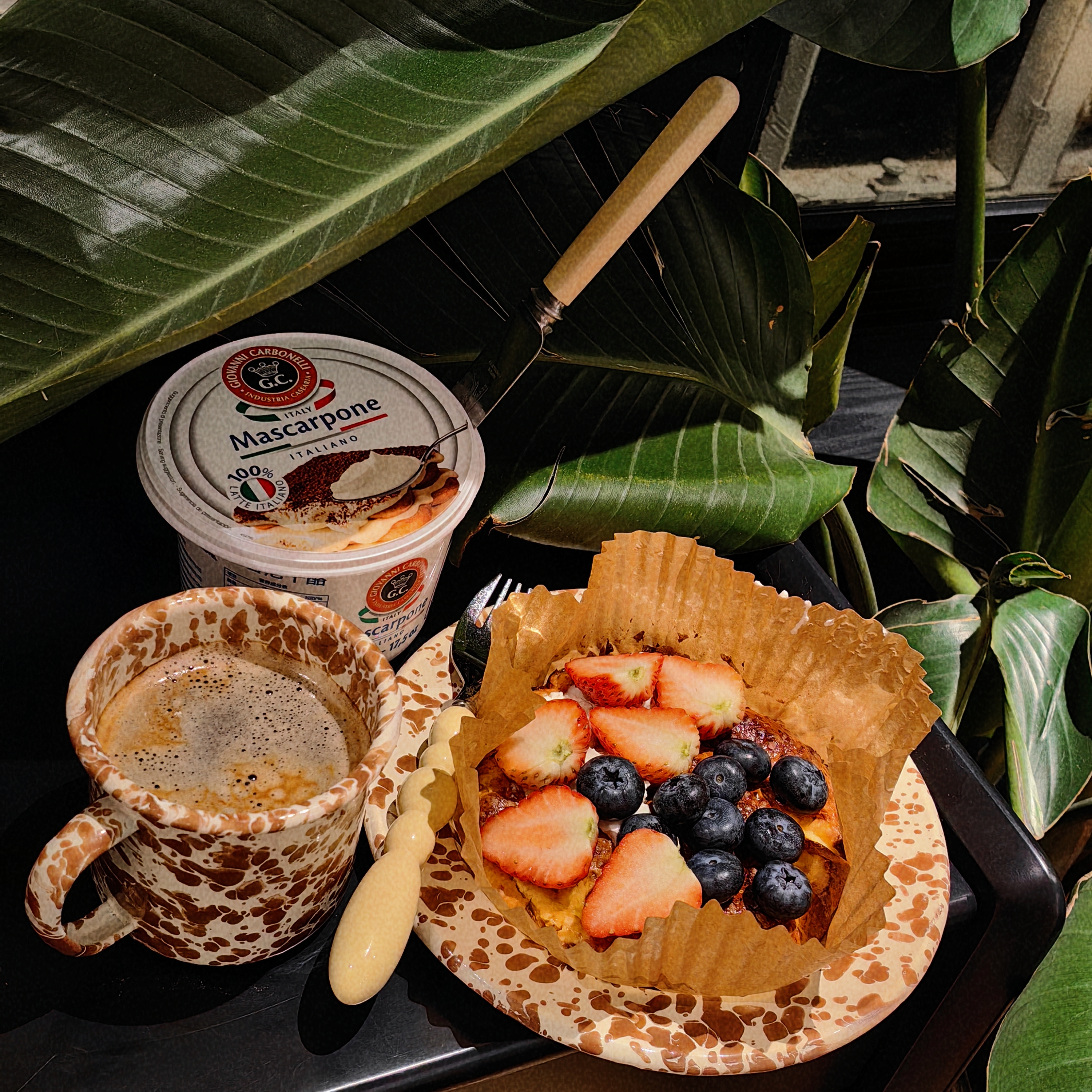 马斯卡彭直接吃有轻淡的甜味,奶香浓郁,蓬松的口感和大部分奶酪都不一样,更类似于奶油霜,用来涂抹面包就很加分,再配上小水果,真的满足!当然,烘焙小能手也可以用来做经典的提拉米苏、纸杯蛋糕,都是很好的材料。喜欢浓郁奶味咸口的老粉,可以将马斯卡彭奶酪放到意面中作调味用,或者和土豆、培根、食盐、胡椒粉一起做成土豆泥,也是敲好吃!