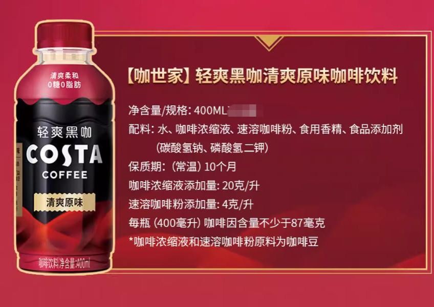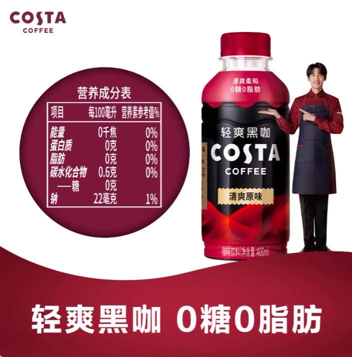 咖世家Costa轻爽黑咖 清爽原味咖啡400ml