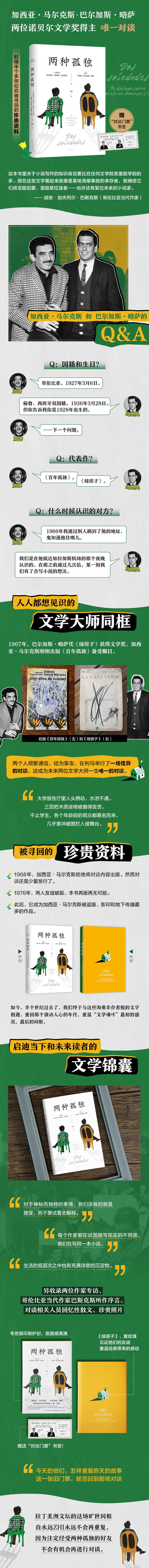 两种孤独(加西亚·马尔克斯×巴尔加斯·略萨 两位诺贝尔文学奖得主一生中惟一对谈 精装正版 )(加夫列尔·加西亚·马尔克斯)