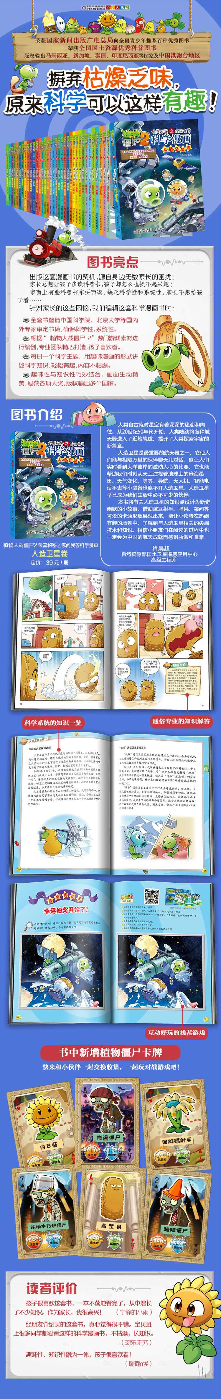 本书将有关人造卫星的基本原理、组成构造、发展历程、应用领域以及系列“卫星之最”等知识点,设计为多个新奇幽默的小故事,借助豌豆射手、坚果、菜问等小朋友喜爱的卡通形象展现出来。小读者可以在热闹有趣的场景中,了解到什么是人造卫星,它们是如何被发射到太空的,卫星在太空中是如何工作的,卫星和我们的生活有什么关系,以及人造卫星中的那些尖端技术和有意思的小知识。相信小朋友们在阅读的过程中也一定会为中国的航天成就而感到骄傲和自豪。