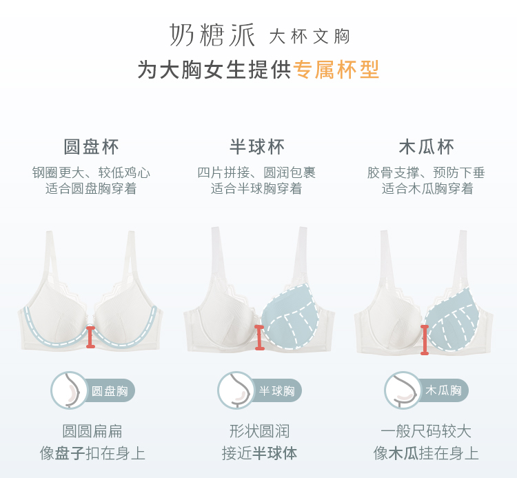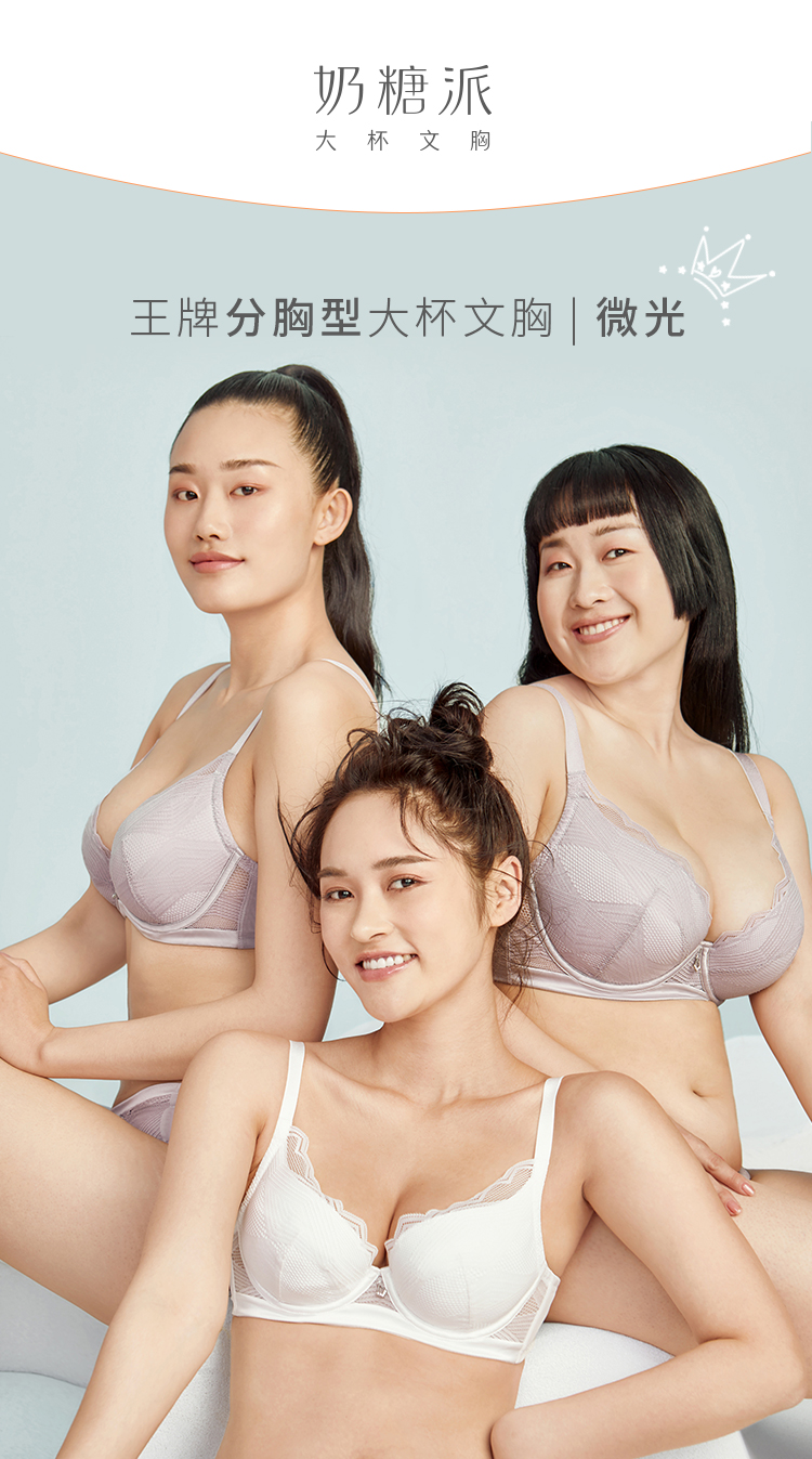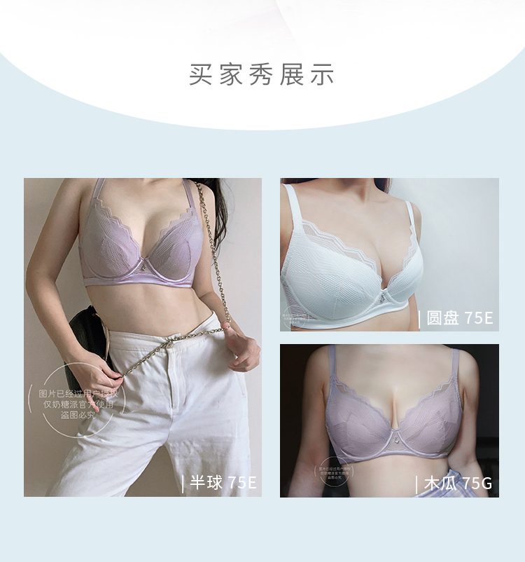 【3月会员积分兑换】奶糖派大杯文胸微光分胸型蕾丝大胸内衣上托简约轻薄透气胸罩女