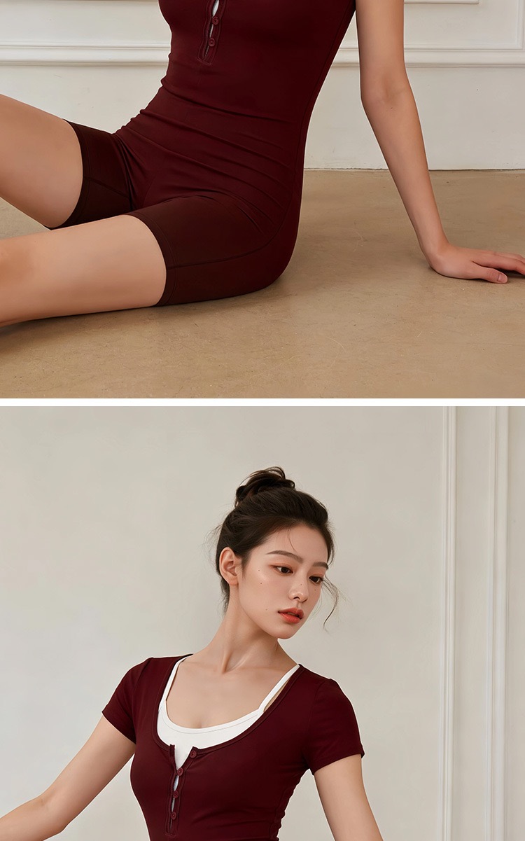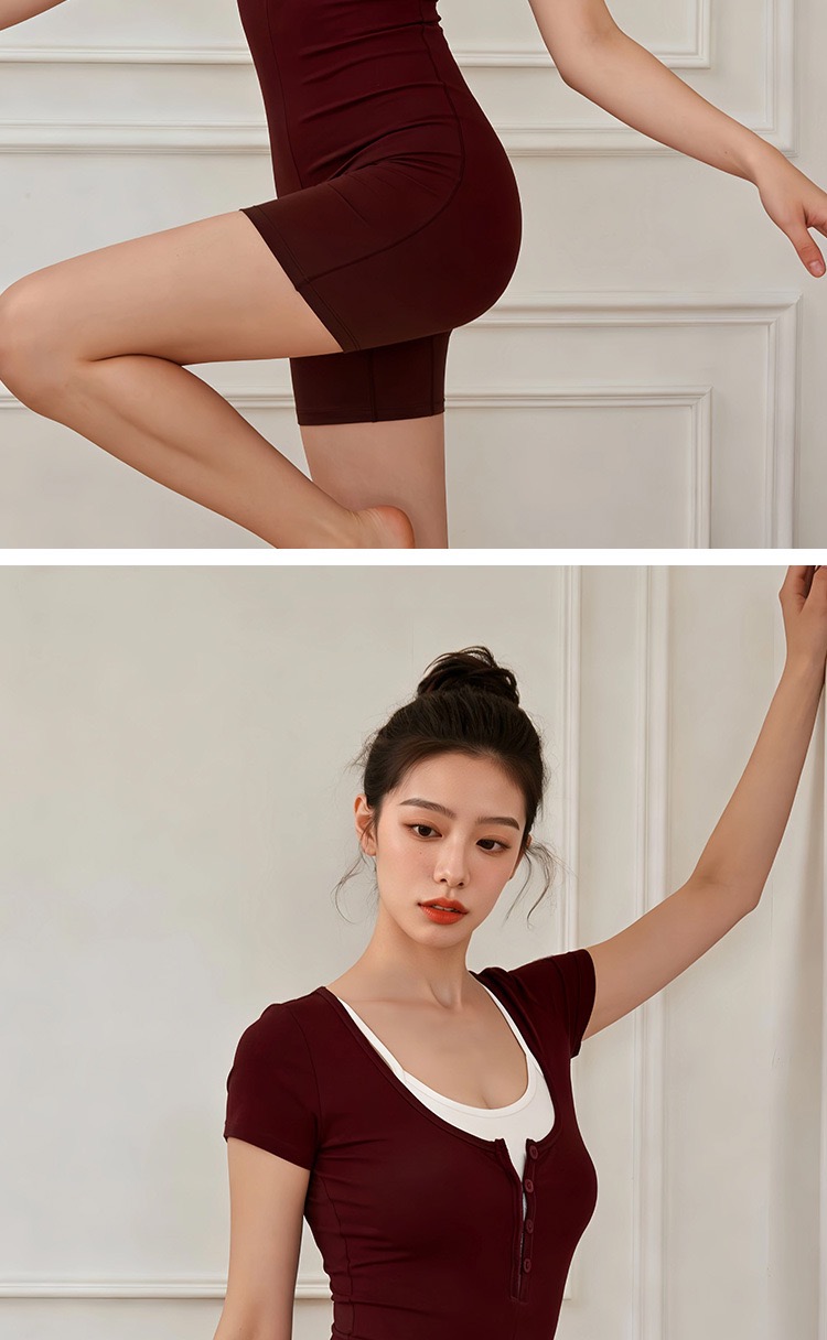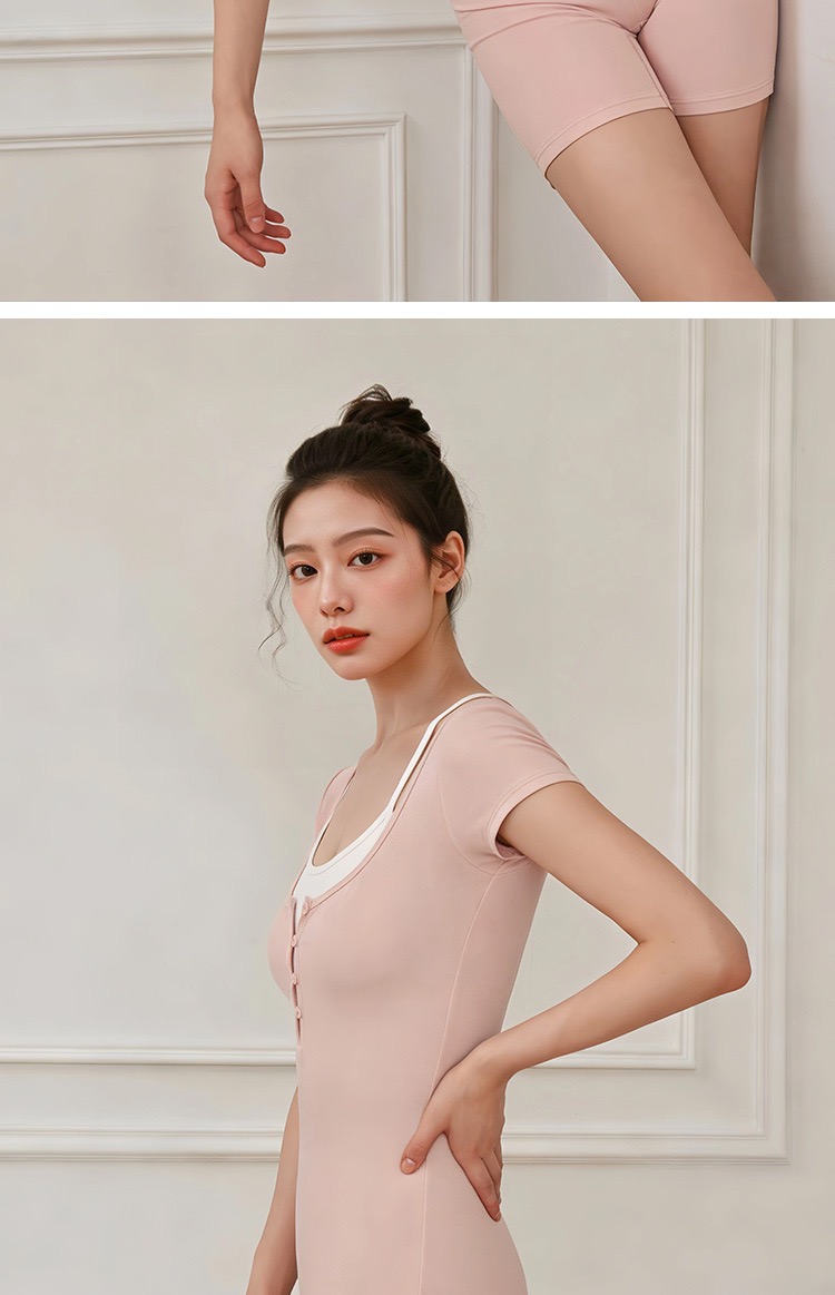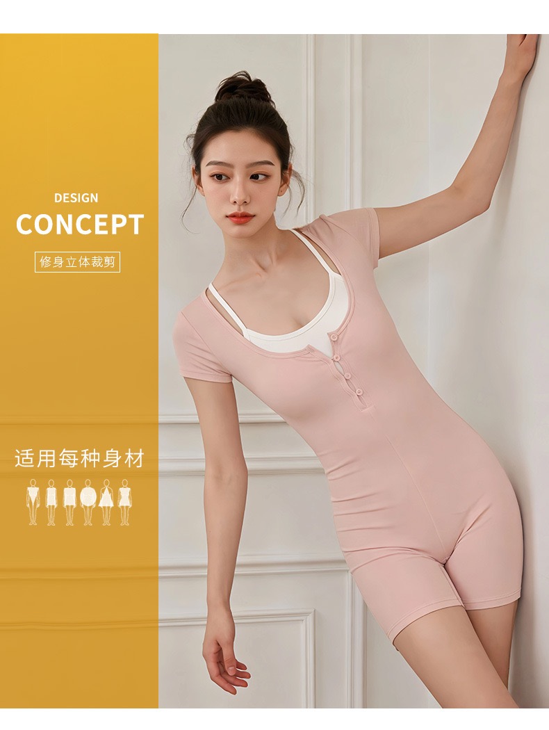 孕妇瑜伽连体衣短袖纽扣设计绝美漂亮瑜伽健身训练普拉提女 000LS369