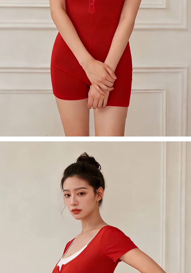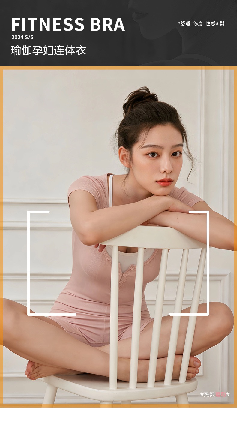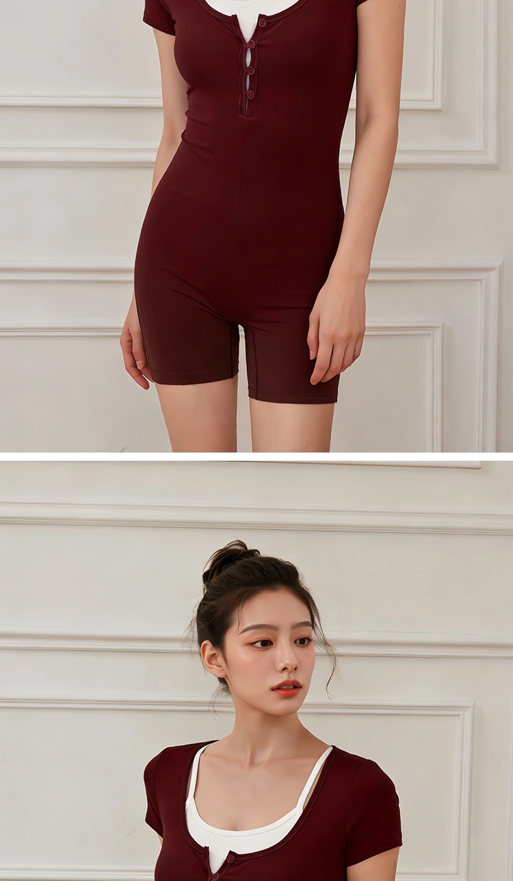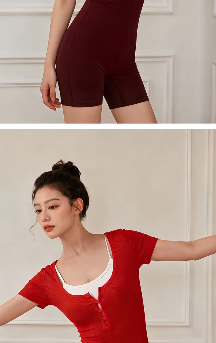 孕妇瑜伽连体衣短袖纽扣设计绝美漂亮瑜伽健身训练普拉提女 000LS369
