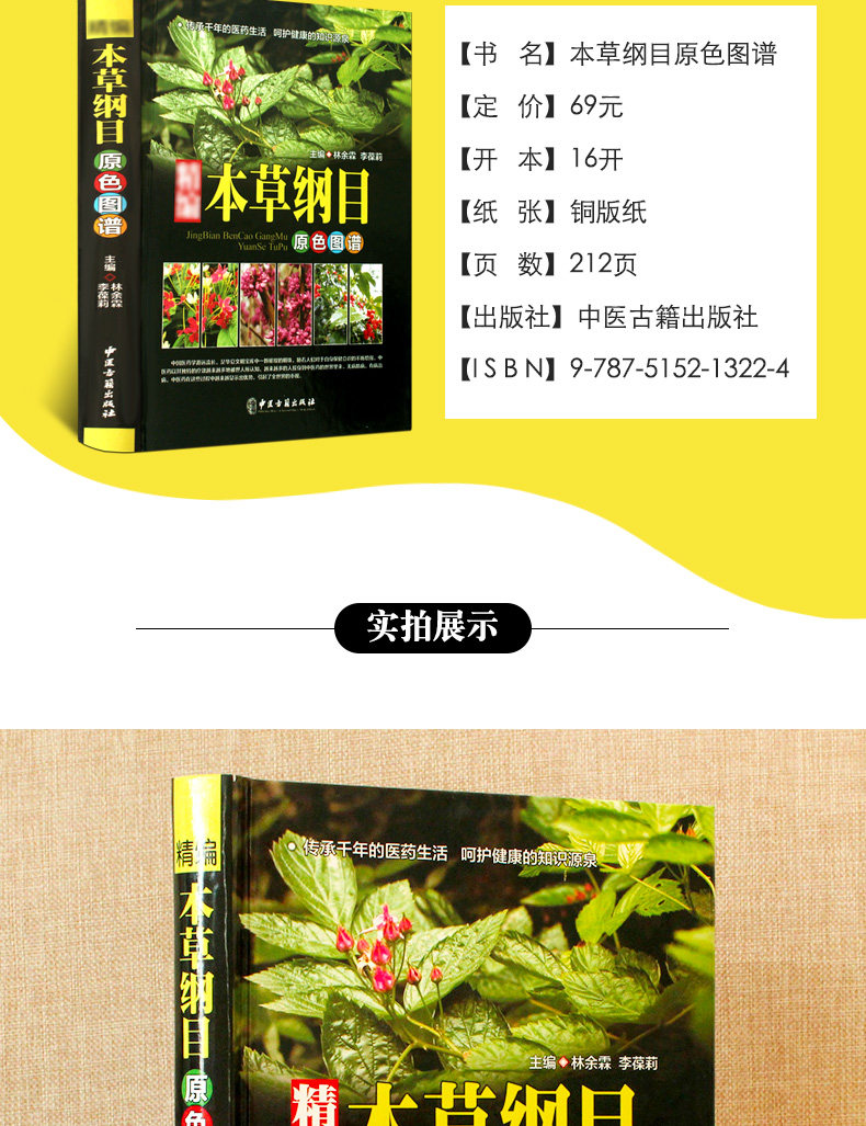 全2册】精编中草药+本草纲目原色图谱正版中草药全图鉴速查手册图谱中国药材图鉴大全常用中草药识别应用原色图片中医学书籍