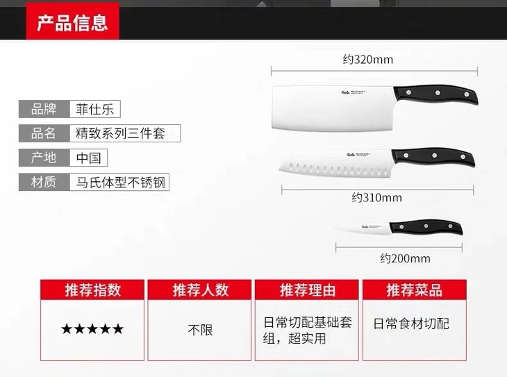 10楼菲仕乐 精致刀具三件组 吊牌价1380元 活动价299元
