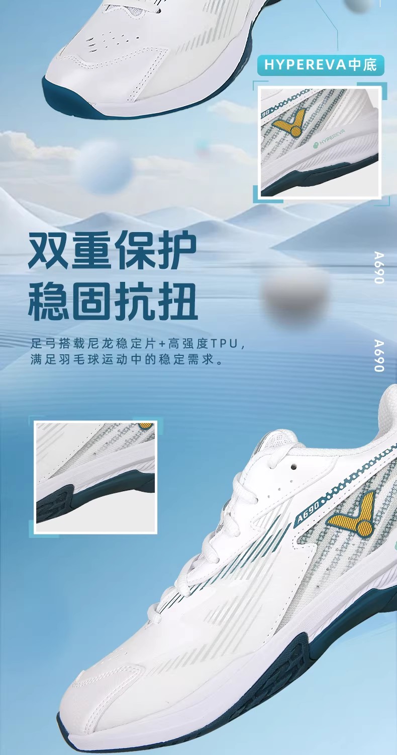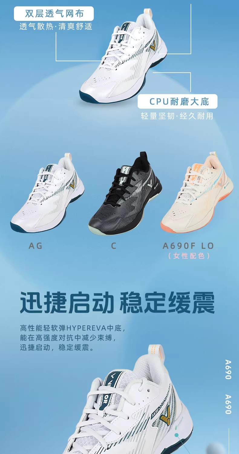 2026年新款VICTOR威克多羽毛球鞋A690F男女款运动鞋减震防滑透气