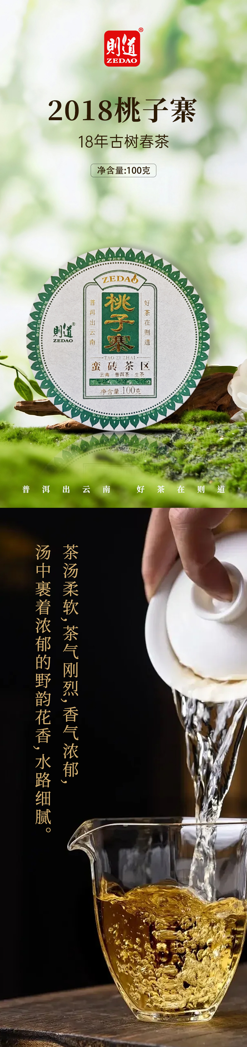 【山头茶】则道茶业2018桃子寨 100g 普洱生茶